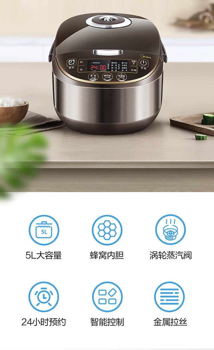 商品名稱:美的WFS5017TM 智能電飯煲 電飯鍋家用5L大容量預(yù)約氣動(dòng)渦輪防溢鍋金屬機(jī)身蒸米飯鍋(3-10人)