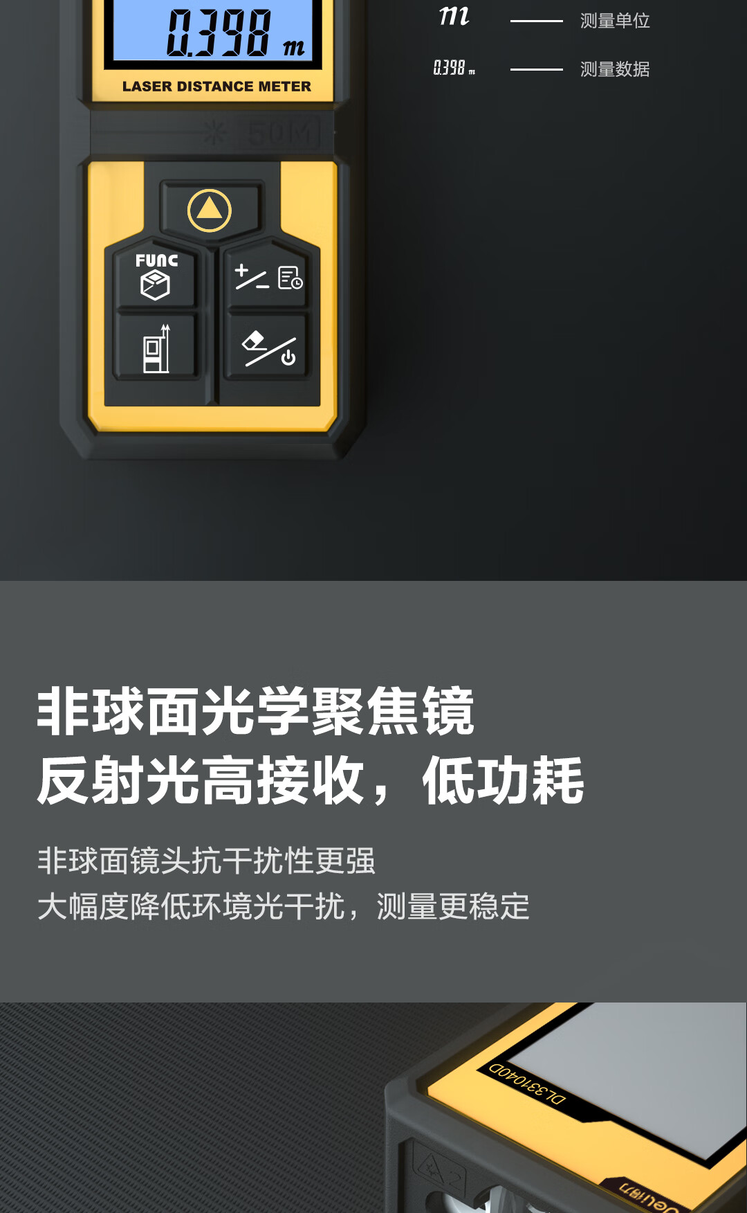 商品名稱:得力DL331040D 測距儀 手持式激光高精度電子尺紅外量房儀50米量程毫米級精度