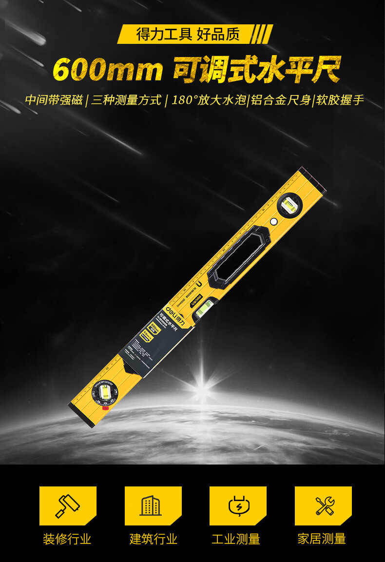 商品名稱:得力DL983600B 可調(diào)式水平尺 高強(qiáng)磁多角度精度鋁合金水平測(cè)量尺防摔平衡儀600mm