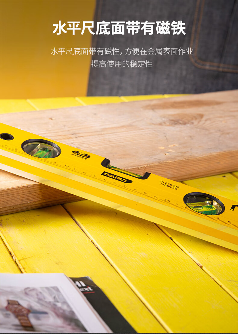 商品名稱:得力DL290300 強(qiáng)磁多角度水平尺 鋁合金水平測(cè)量尺水平儀300mm