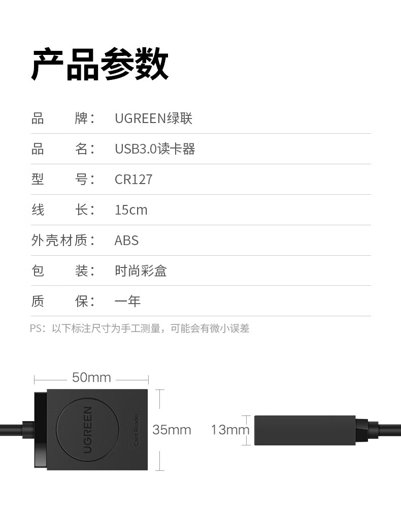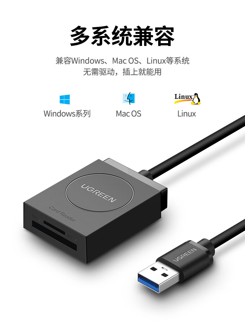 商品名稱:綠聯(lián)CR127 USB3.0高速讀卡器 SD/TF二合一多功能讀卡器 適用手機(jī)單反相機(jī)行車記錄儀監(jiān)控存儲內(nèi)存卡讀卡器