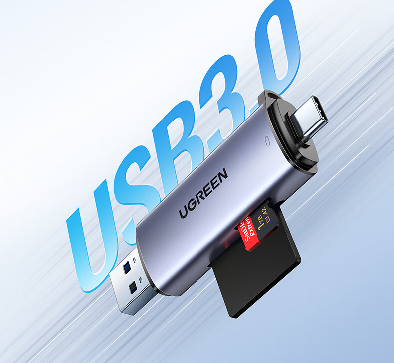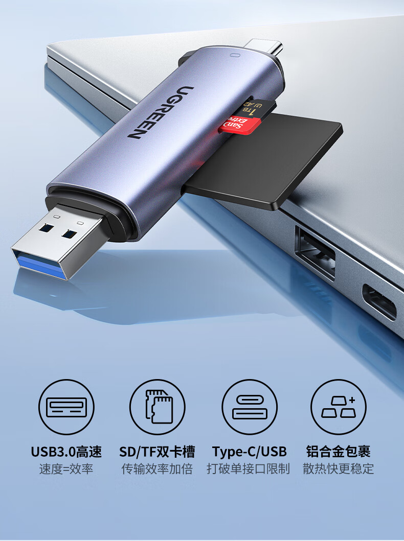 商品名稱:綠聯 USB/Type-C讀卡器 3.0高速 SD/TF多功能 適用電腦蘋果15/iPad/安卓手機 支持相機無人機監(jiān)控內存卡