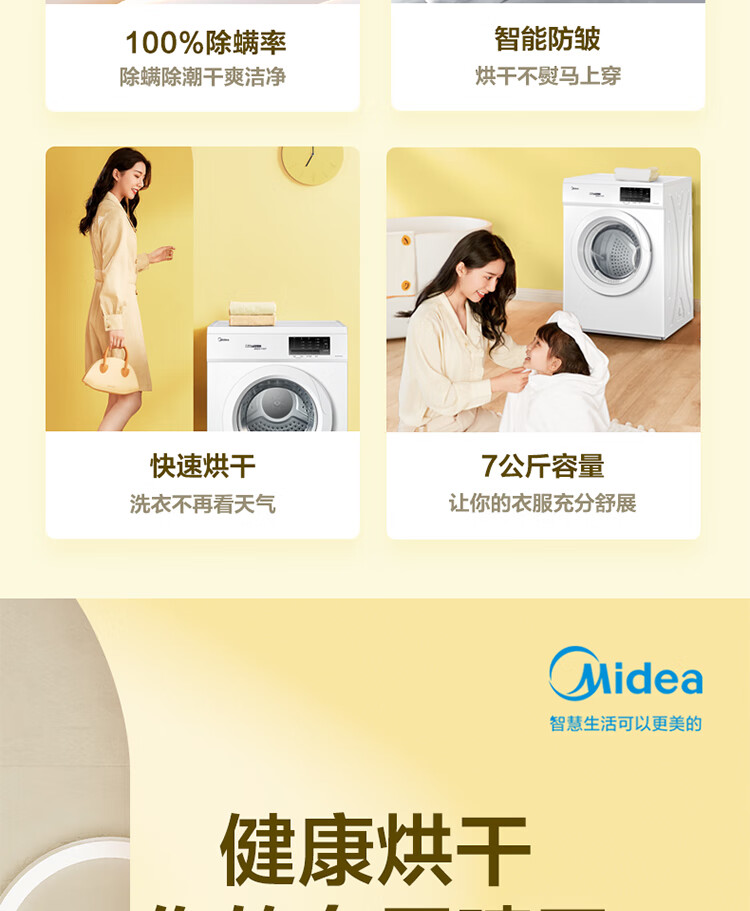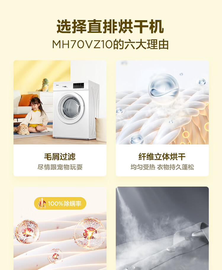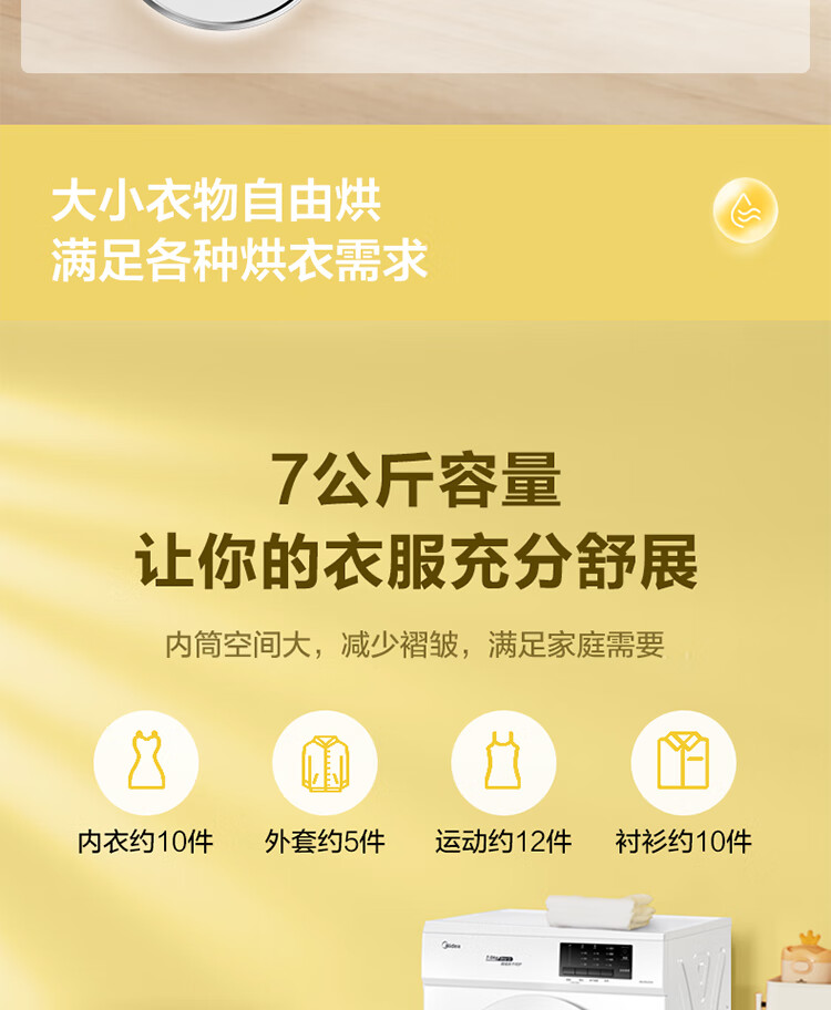 商品名稱:美的MH70VZ10 烘干機(jī) 直排式干衣機(jī) 7公斤健康烘干 祛味除螨 纖維立體烘干 高溫除螨