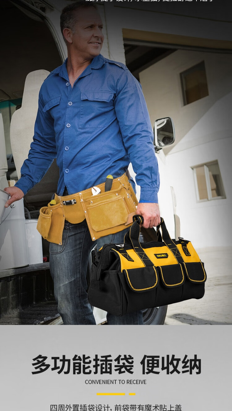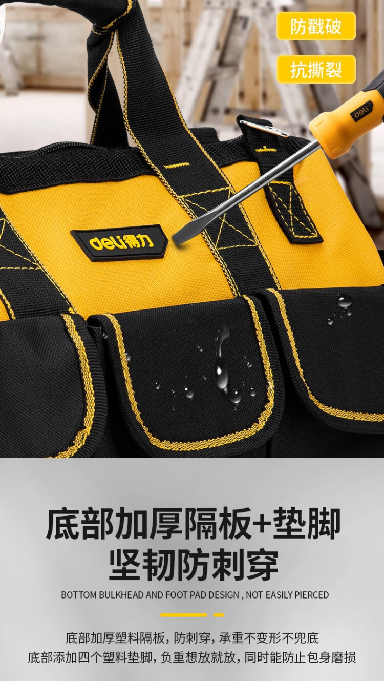 商品名稱:得力DL430116 工具包 加厚16英寸電工五金維修帆布工具包