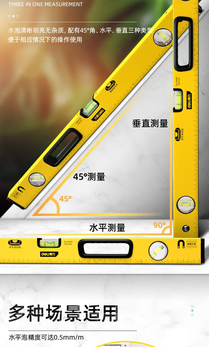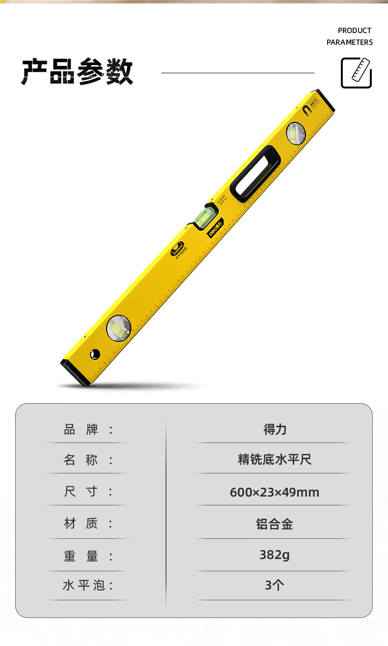 商品名稱:得力DL290600 強(qiáng)磁多角度水平尺 鋁合金水平測量尺水平儀600mm