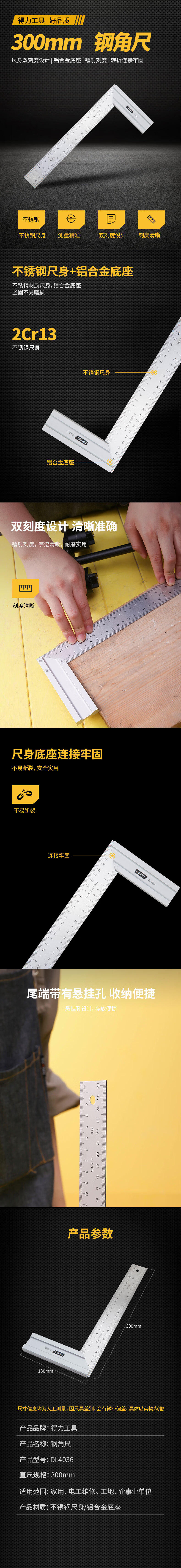 商品名稱(chēng):得力DL4036 鋼角尺 不銹鋼直角尺雙刻度角尺測(cè)量方直尺木工尺子300mm