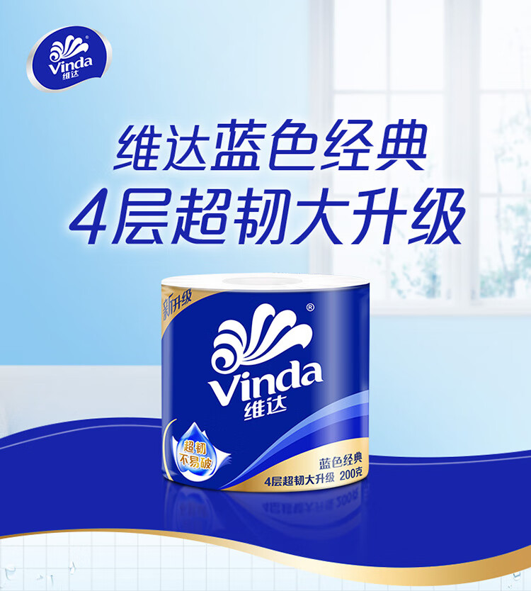 商品名稱:維達(dá) 有芯卷紙 藍(lán)色經(jīng)典4層200克*10卷 厚韌衛(wèi)生紙 卷筒紙