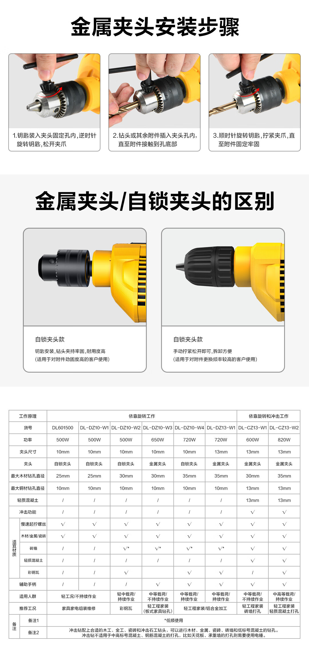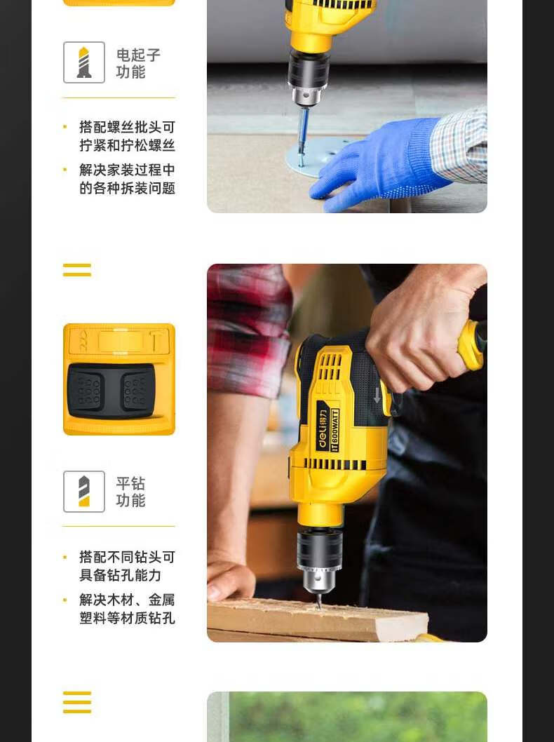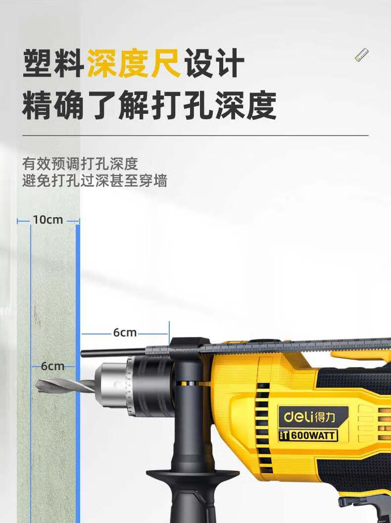 商品名稱:得力DL-CZ13-W1 沖擊電鉆 600W家用輕型手電鉆電動螺絲刀交流電鉆