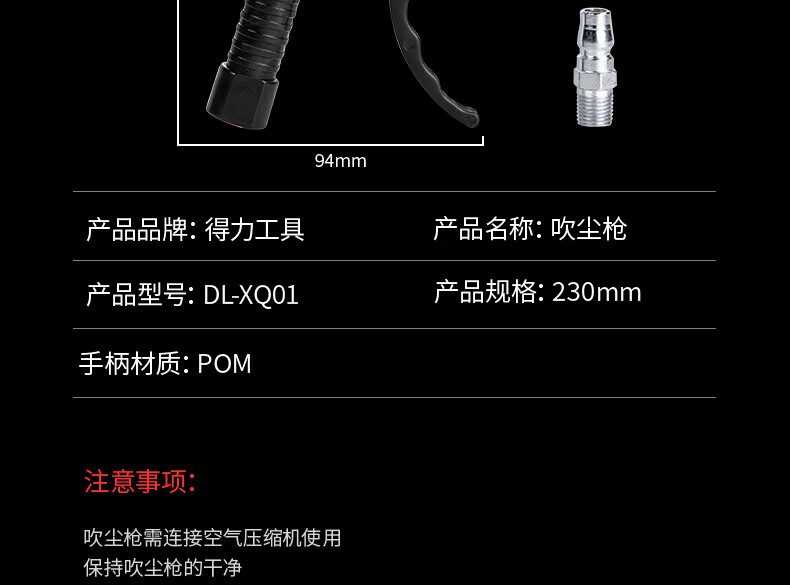 商品名稱:得力DL-XQ01 吹塵槍 230mm高壓空氣去污吹氣吹風(fēng)槍除塵吹塵槍350L/min