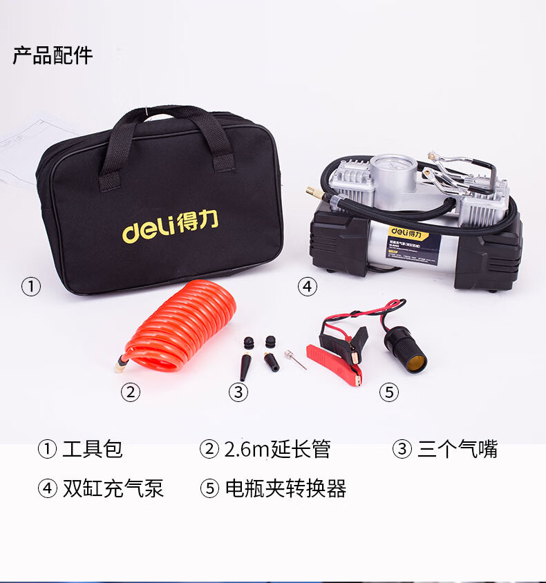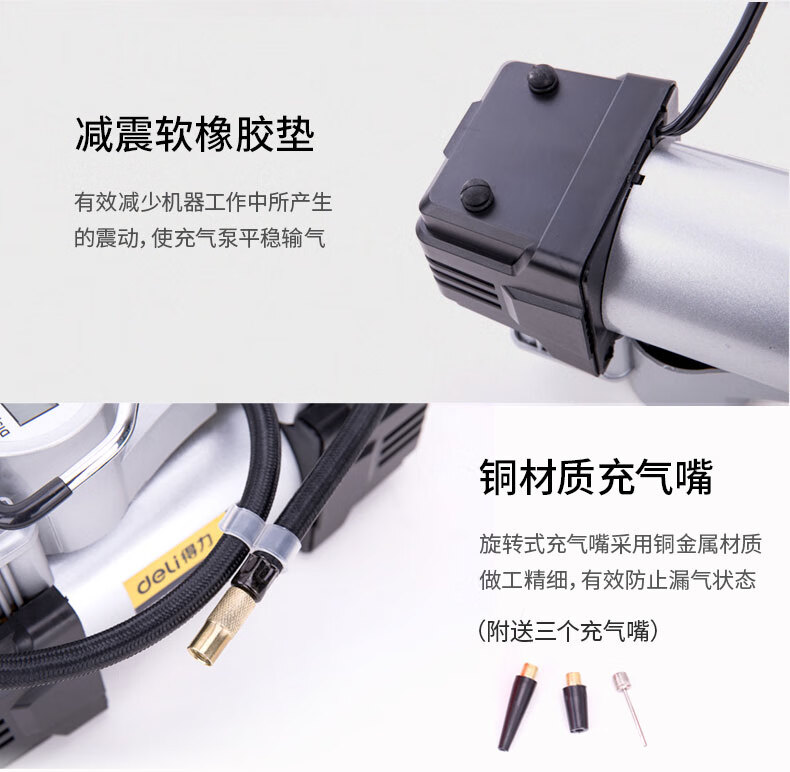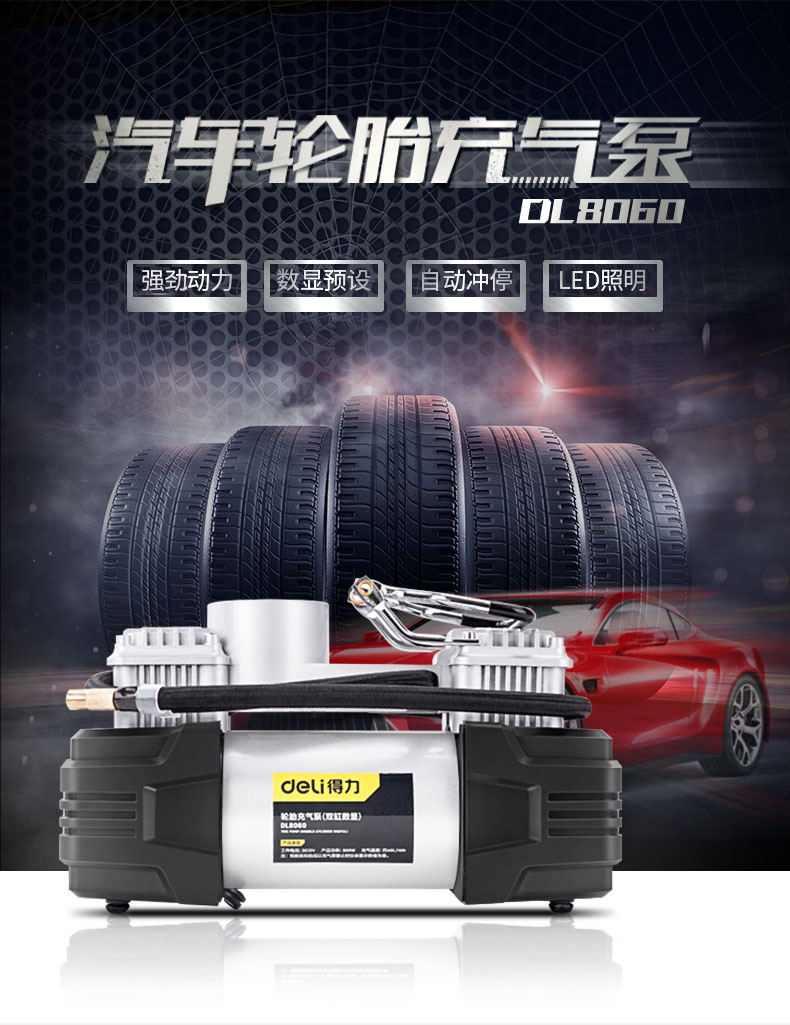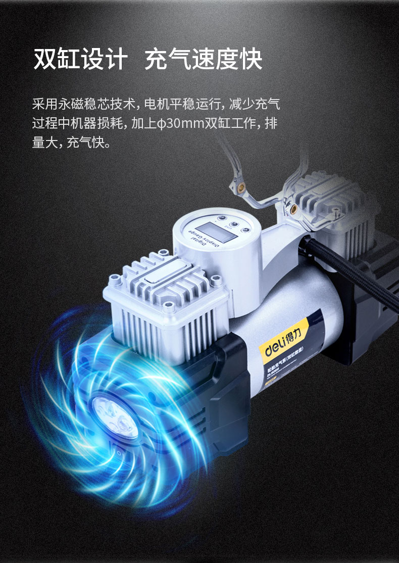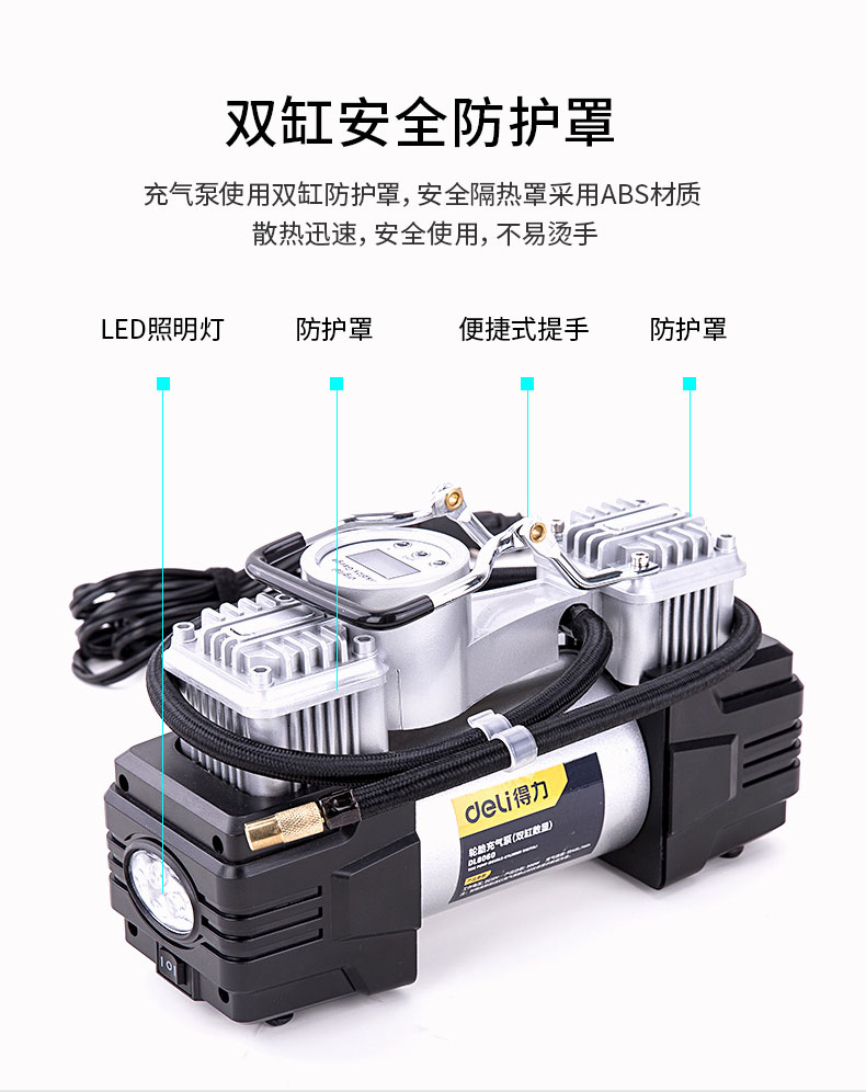 商品名稱:得力DL8060 車載充氣泵 雙缸高壓便攜式轎車輪胎家車用打氣泵筒電動汽車 雙30缸數顯預設胎壓充氣泵
