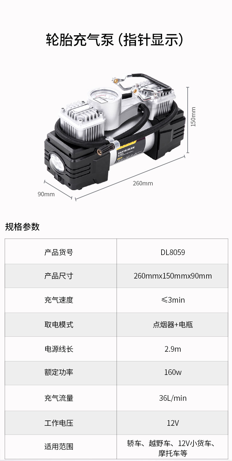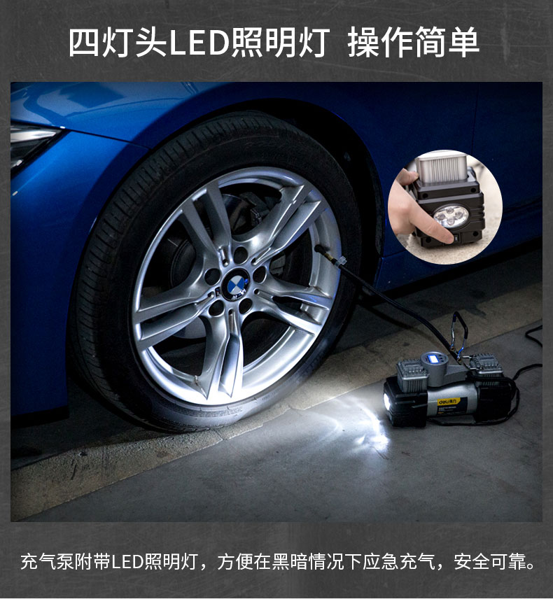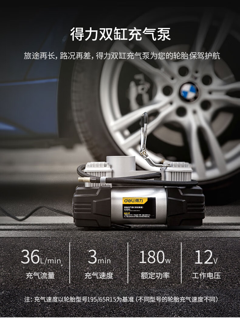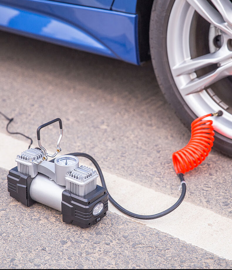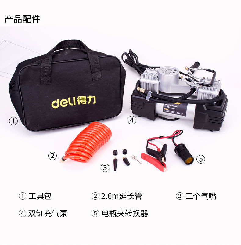 商品名稱:得力DL8060 車載充氣泵 雙缸高壓便攜式轎車輪胎家車用打氣泵筒電動汽車 雙30缸數顯預設胎壓充氣泵