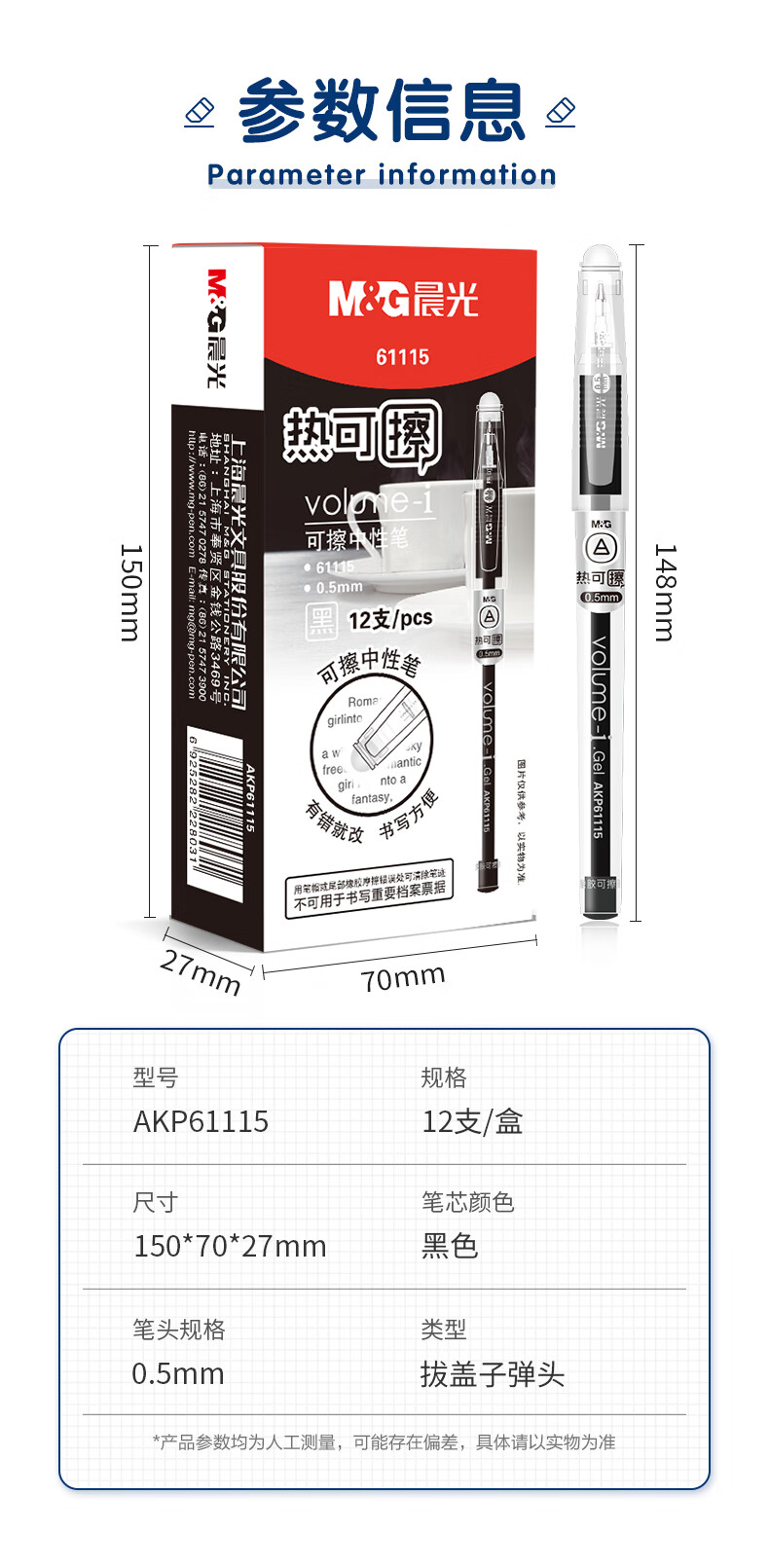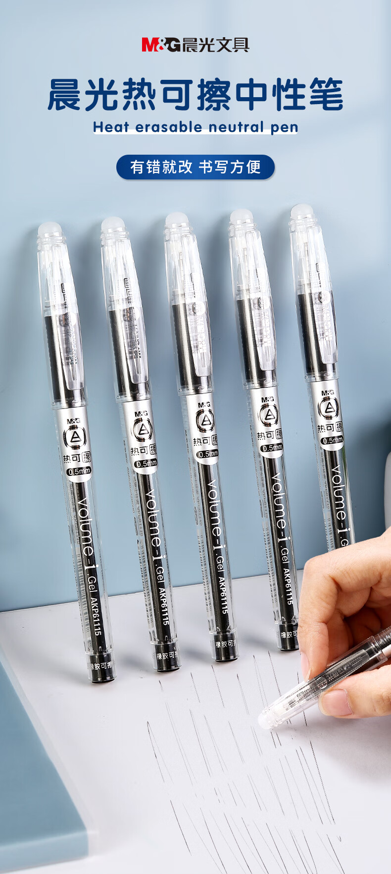 商品名稱:晨光AKP61115A 熱可擦中性筆 0.5mm簡(jiǎn)約拔蓋子彈頭黑色水筆簽字筆 12支/盒