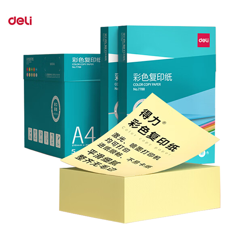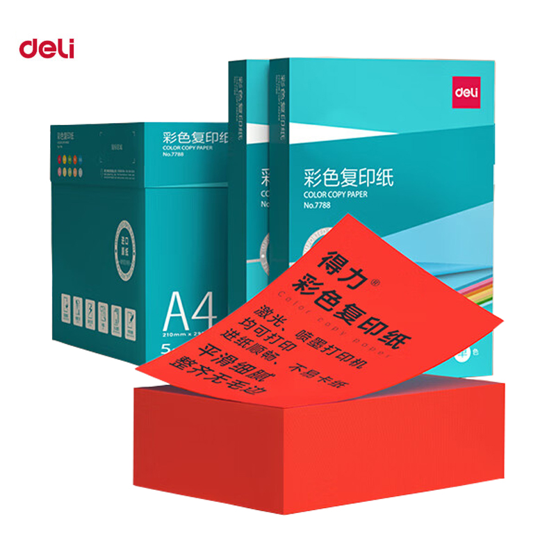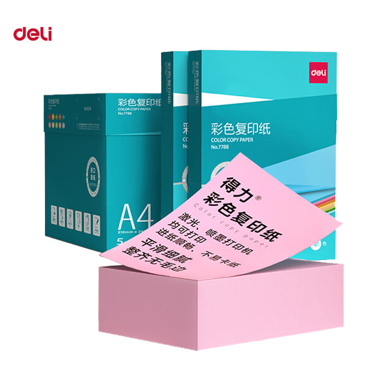 商品名稱:得力7788 彩紙復印紙 80g/A4非厚卡紙兒童手工紙打印紙 5包/箱 (2500張/箱)