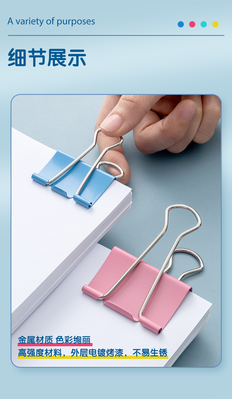 商品名稱:晨光ABS92739 彩色長尾夾 2#41mm大號金屬票據(jù)夾 Eplus系列辦公燕尾夾 24只/罐