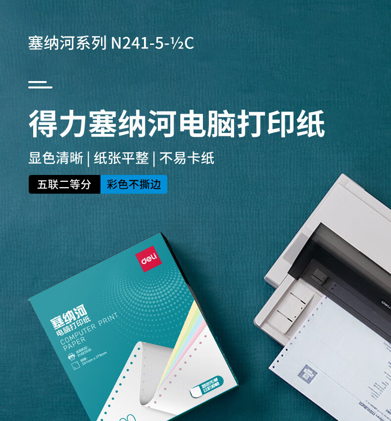 商品名稱:得力N241-5 塞納河針打式電腦打印紙 五聯(lián) 二等分 彩色撕邊