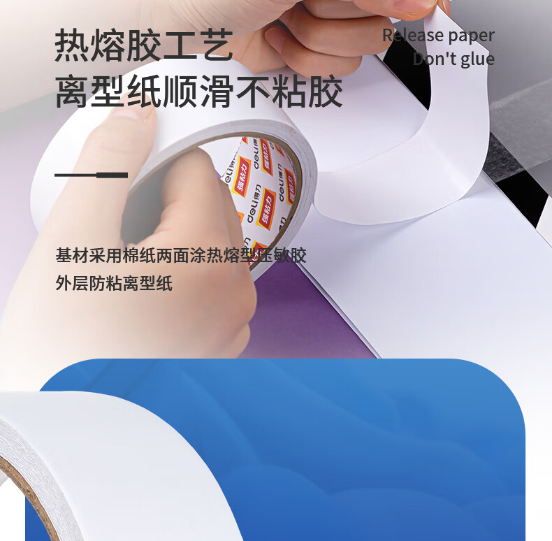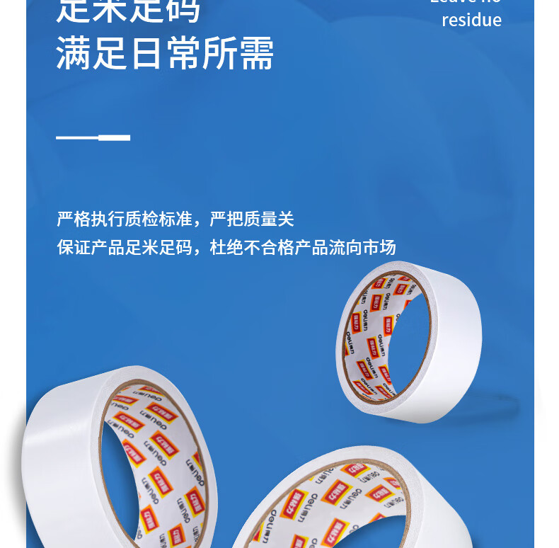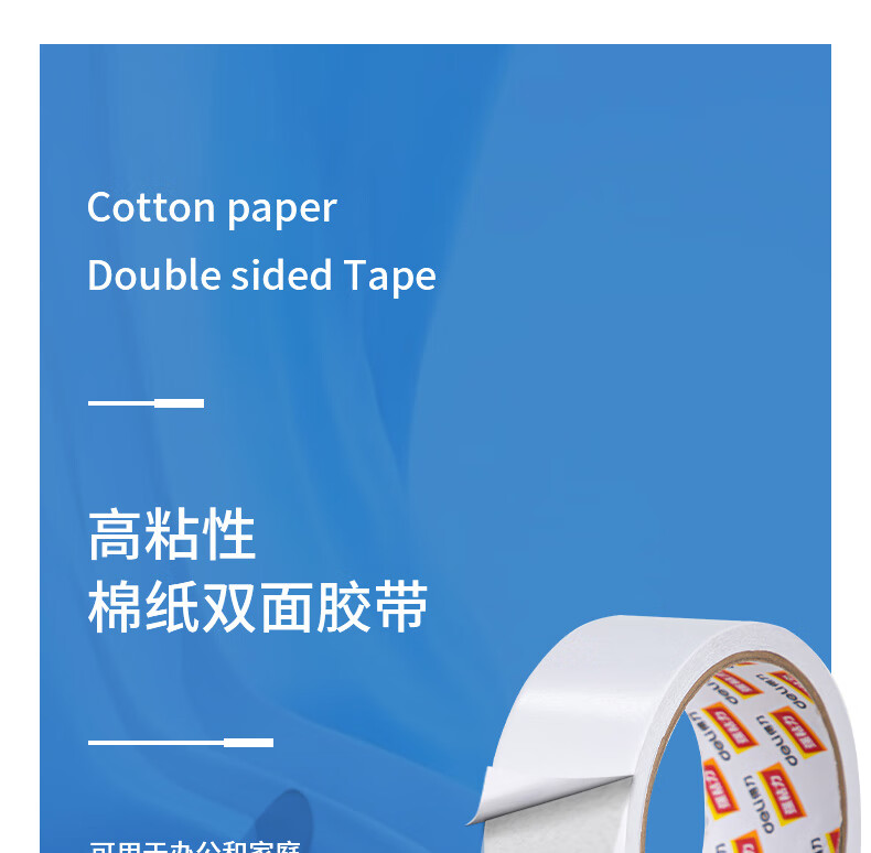 商品名稱:得力30415 高粘棉紙雙面膠帶 學(xué)生文具手工制作 36mm*10y(9.1m/卷) 白色 辦公用品 8卷/筒