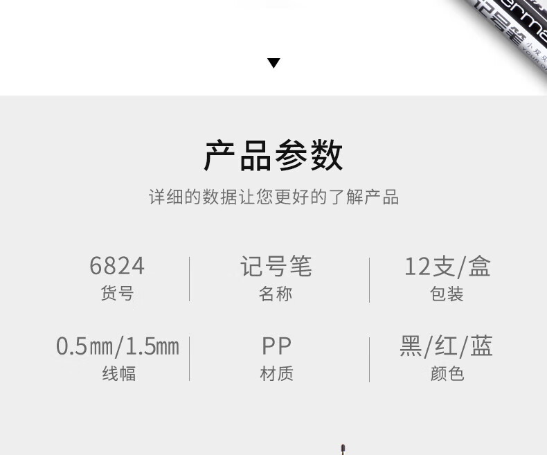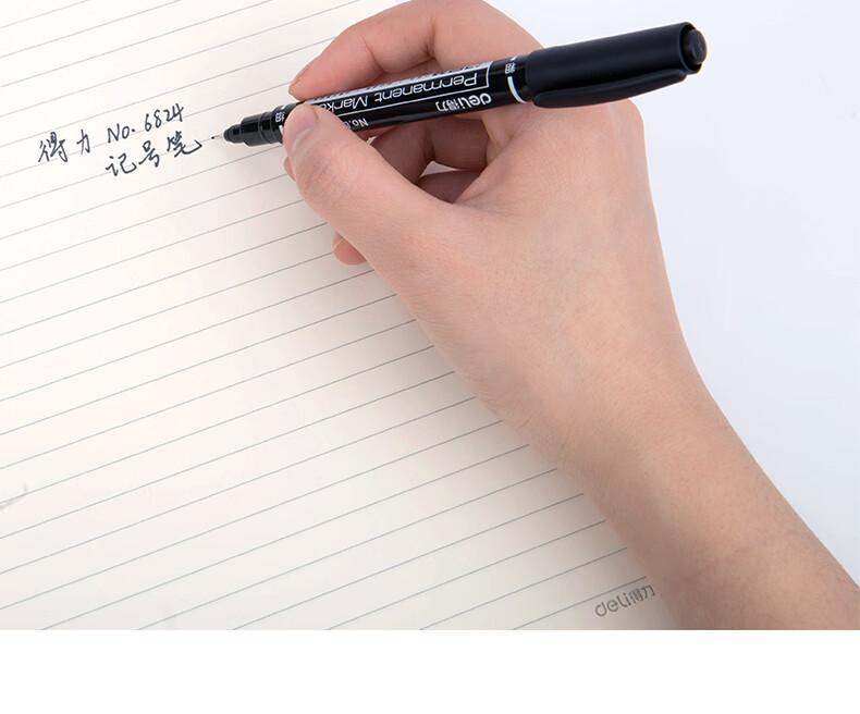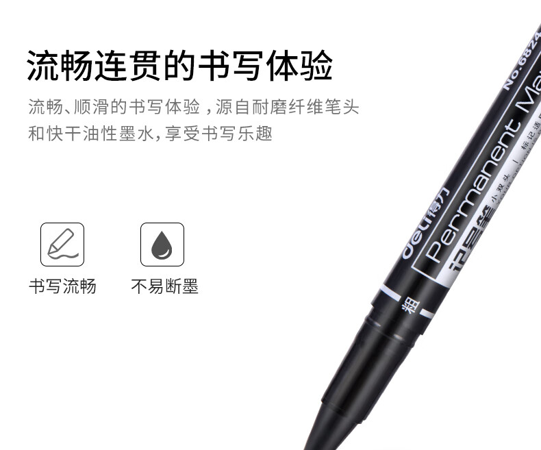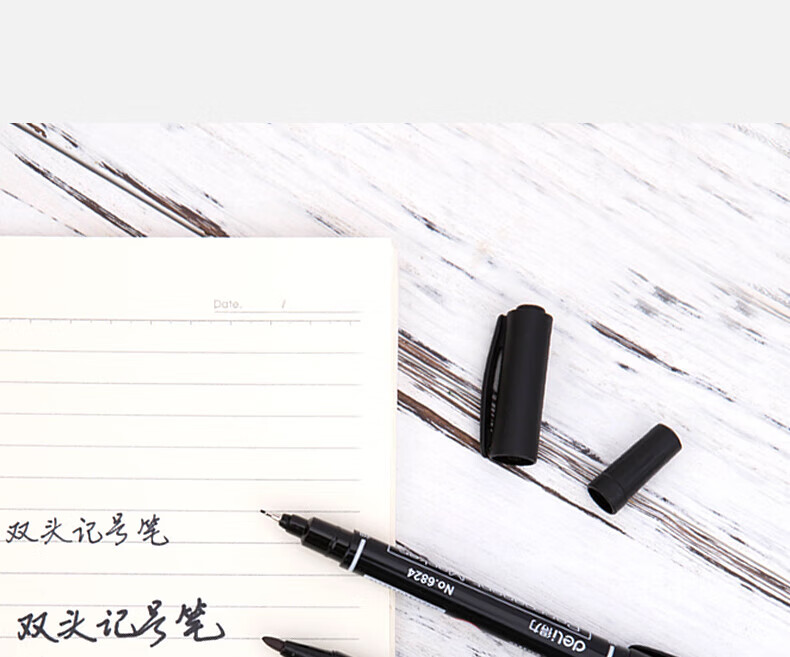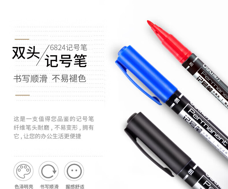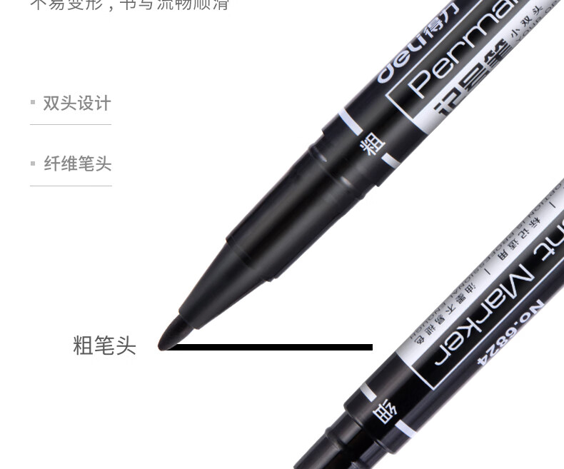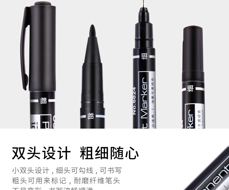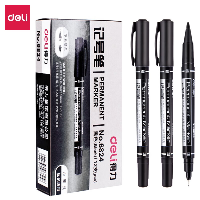 商品名稱:得力6824 雙頭油性記號(hào)筆 辦公物流會(huì)議筆馬克筆 美術(shù)勾線筆 黑色 12支/盒
