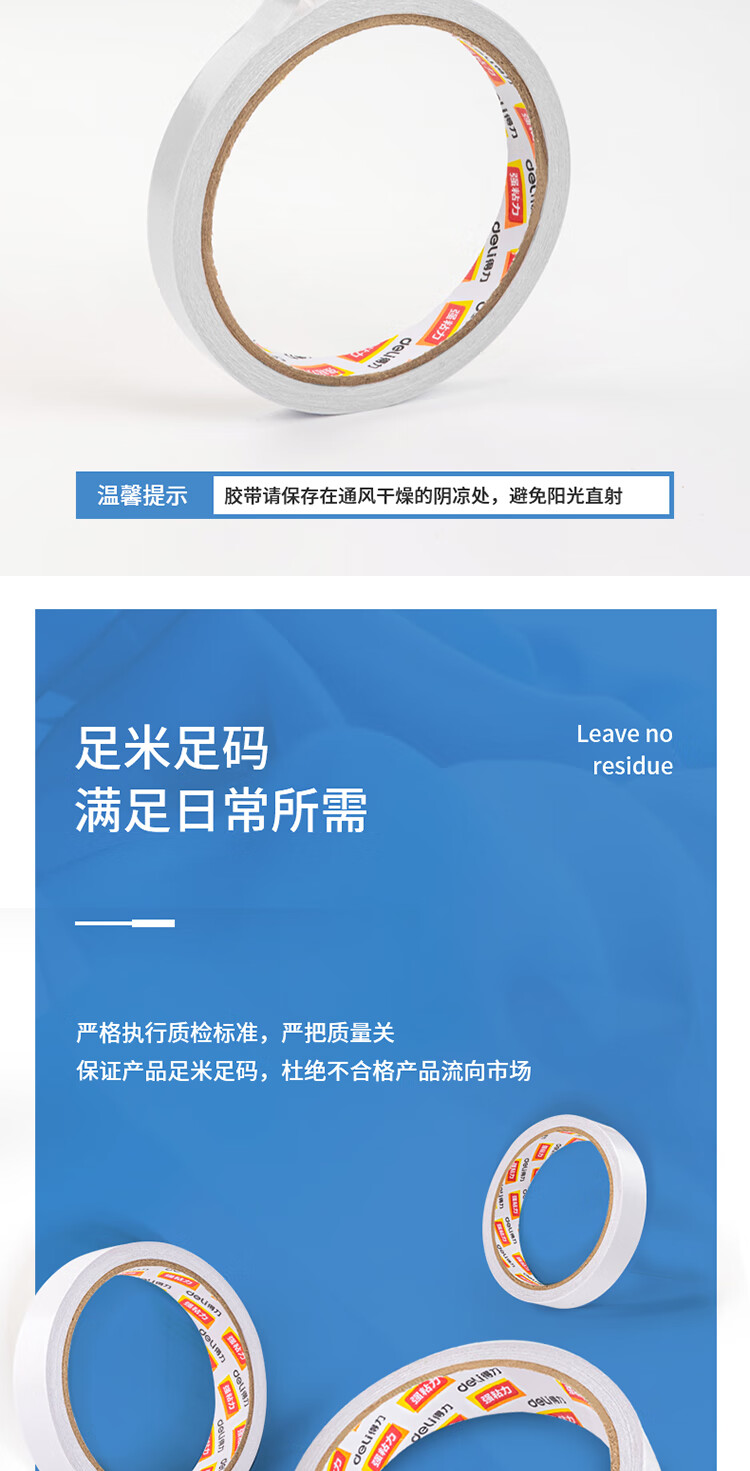 商品名稱:得力30401 高粘棉紙雙面膠帶 12mm*10y(9.1m/卷) 白色 辦公用品 單卷裝
