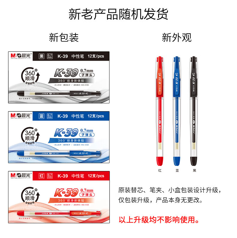 商品名稱:晨光K39 黑色中性筆 0.7mm經(jīng)典拔蓋子彈頭簽字筆 辦公水筆 12支/盒