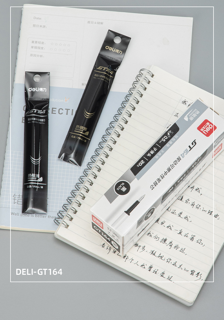 商品名稱:得力GT164 可擦按動(dòng)中性筆芯 0.5mm子彈頭簽字筆水筆替芯 黑色 20支/盒