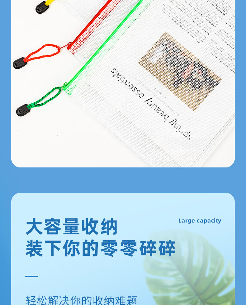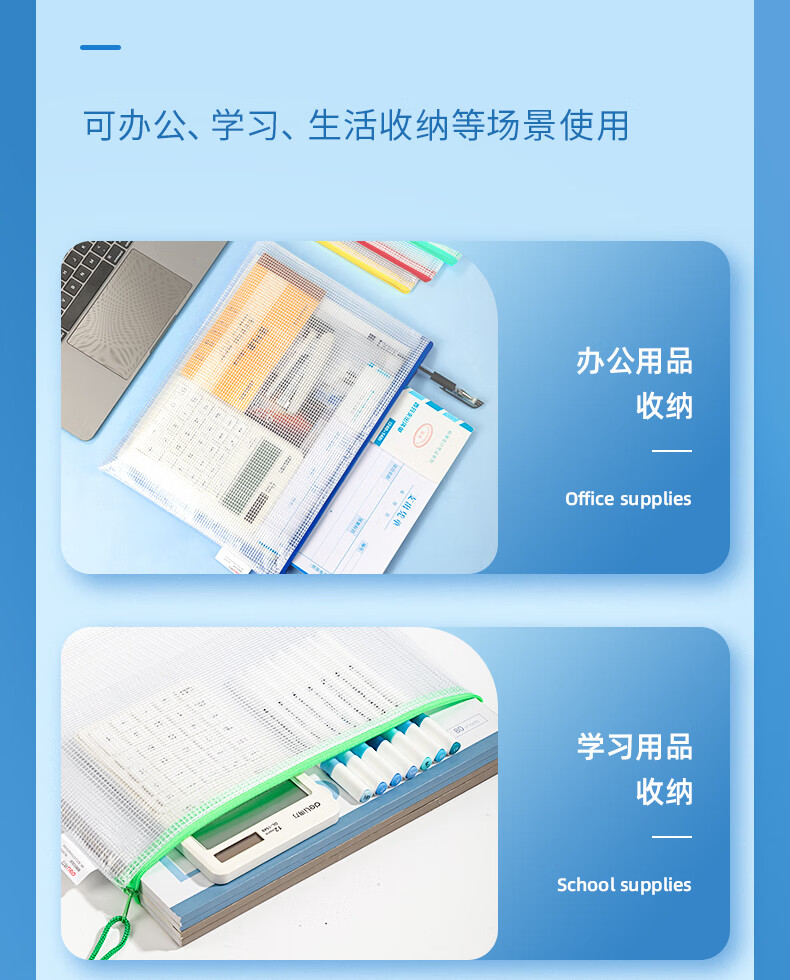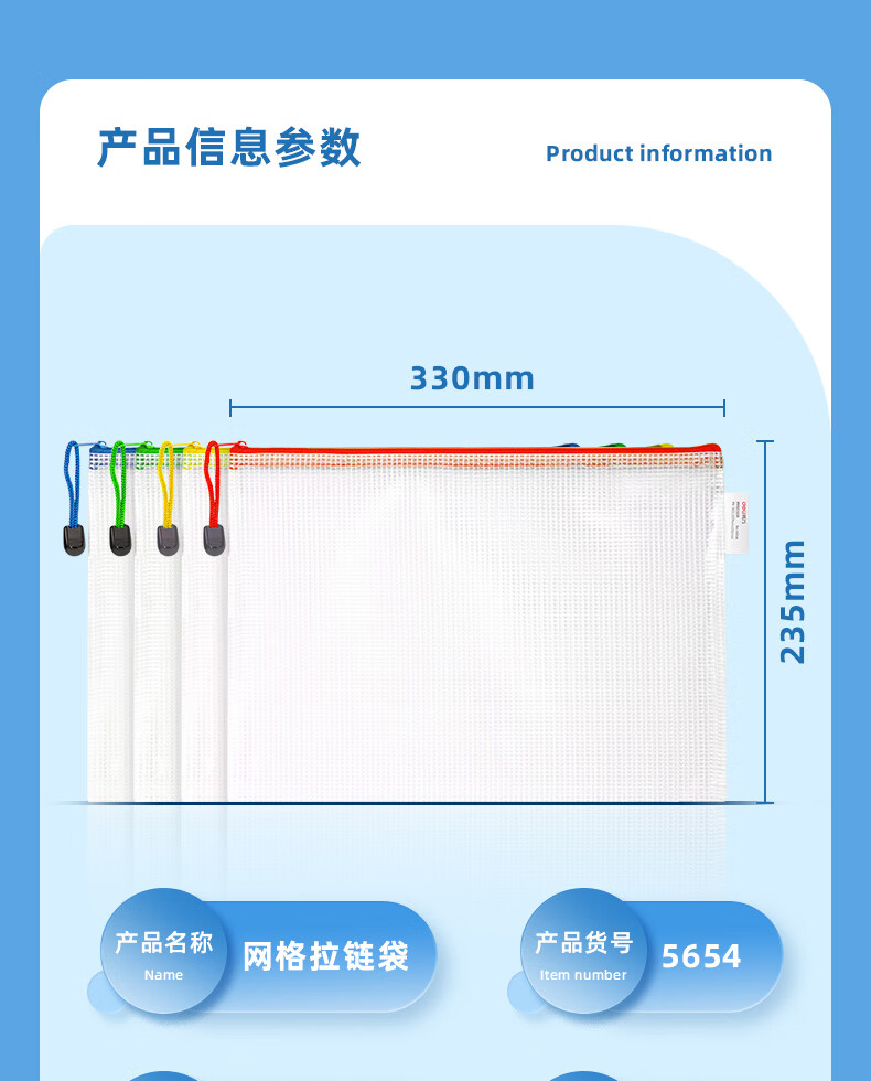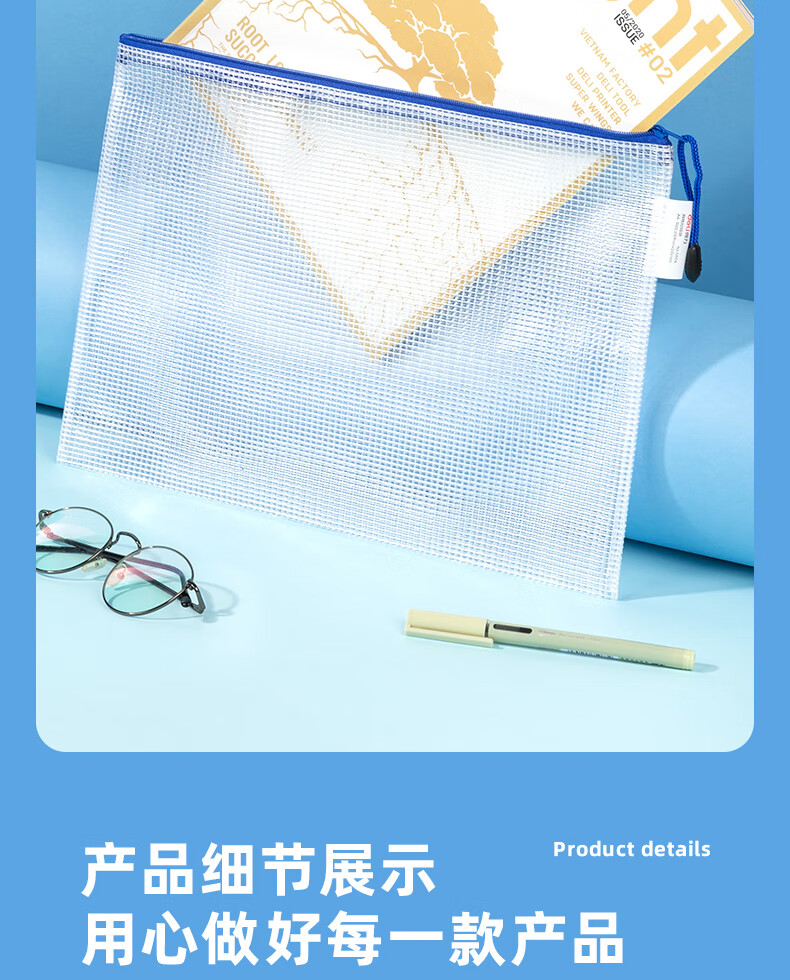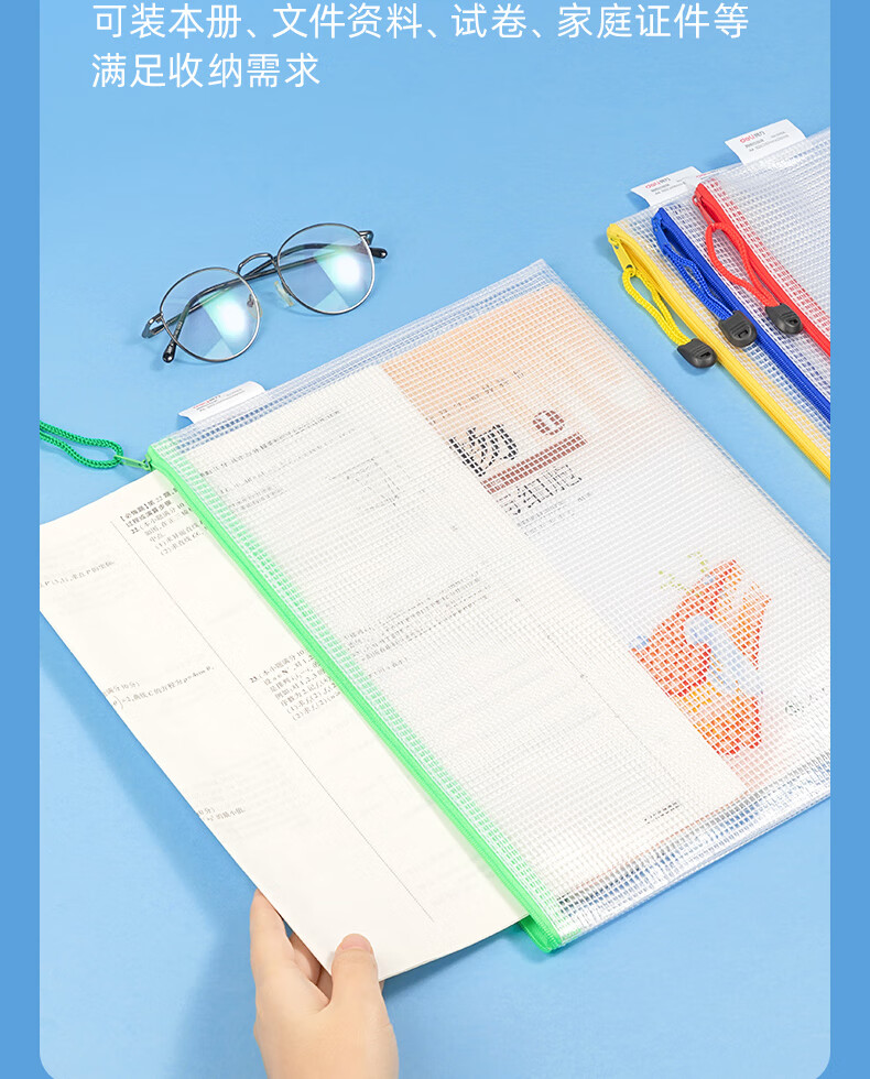 商品名稱:得力5654 網(wǎng)格拉鏈袋 A4收納袋透明文件袋資料袋科目袋學(xué)科袋 顏色隨機 單個裝