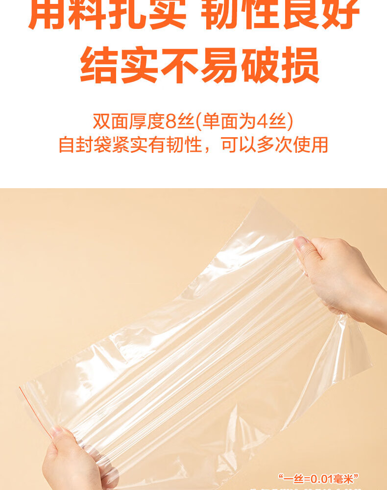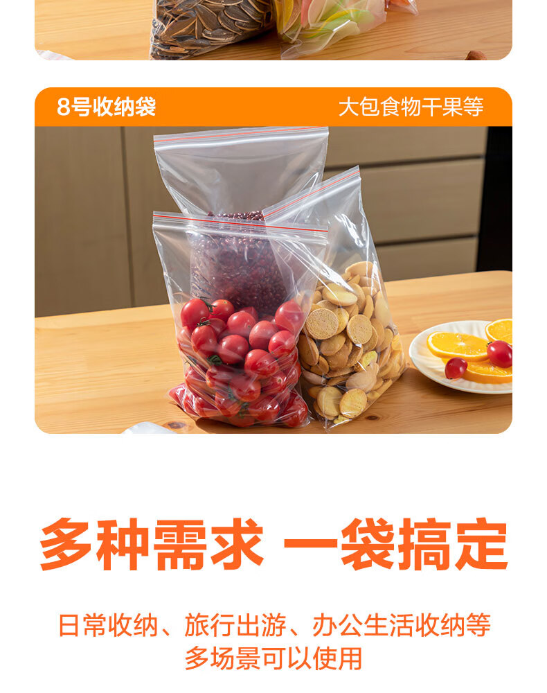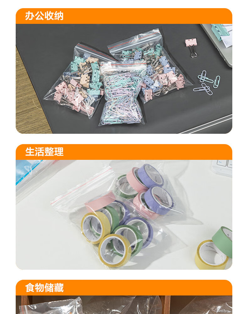 商品名稱:得力3027 食品密封袋 8號(hào)23*17cm 防水防塵保鮮收納PE透明 100只/包