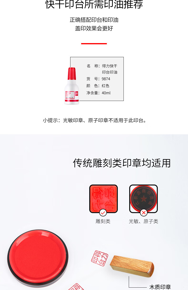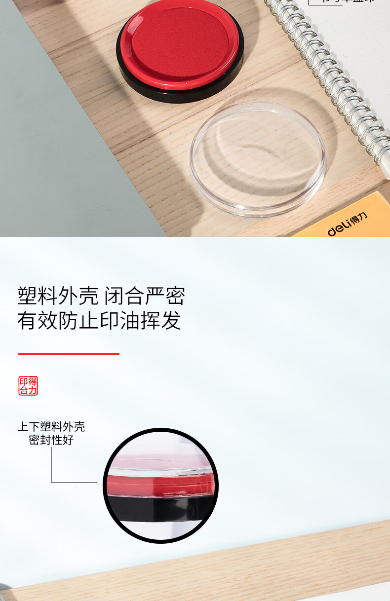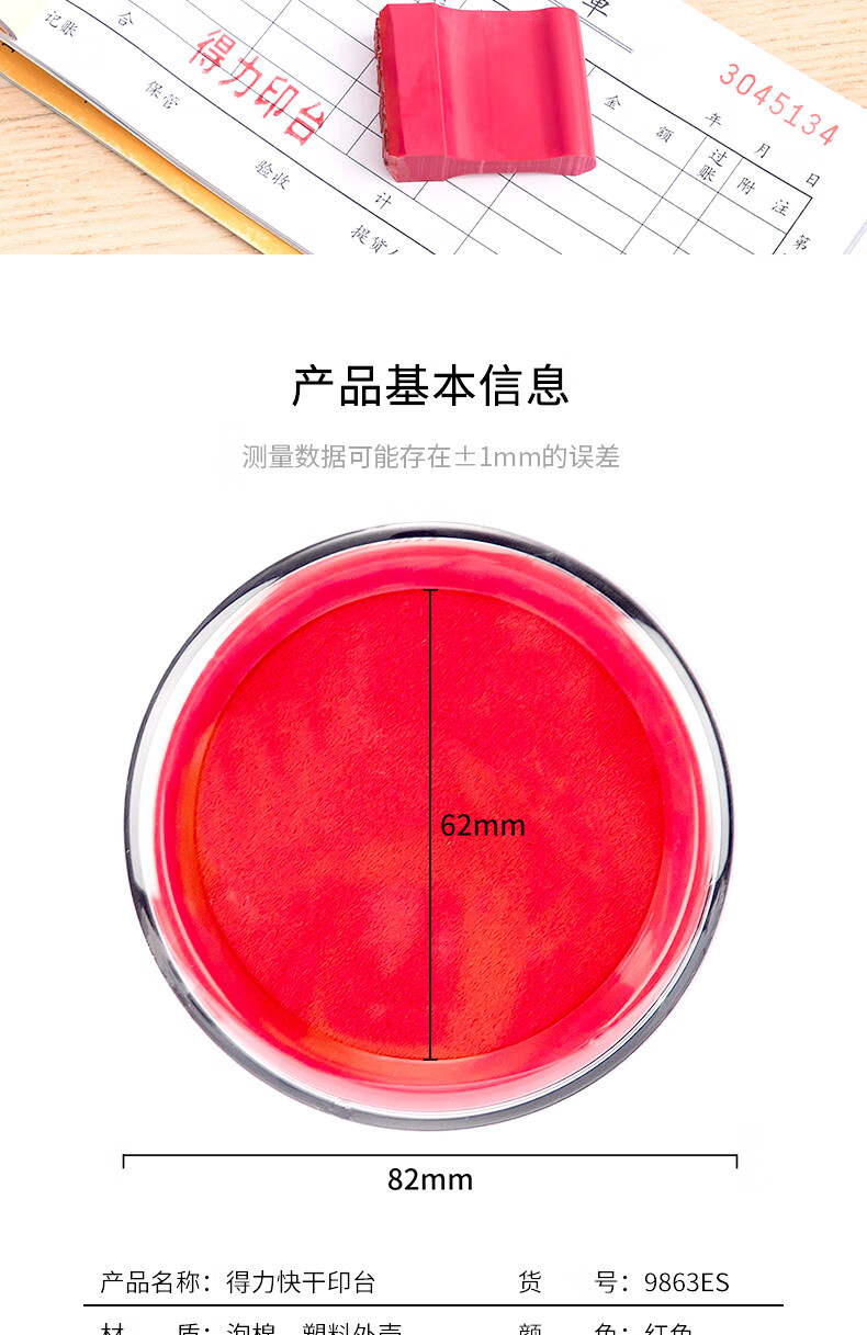 商品名稱:得力9863ES 快干印臺(tái) φ82mm圓形財(cái)務(wù)用品 紅色 單個(gè)裝