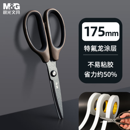商品名稱:晨光ASS913R7H 特氟龍省力剪刀 175mm軟膠手柄圓角刀刃防銹防粘 棕色 單把裝