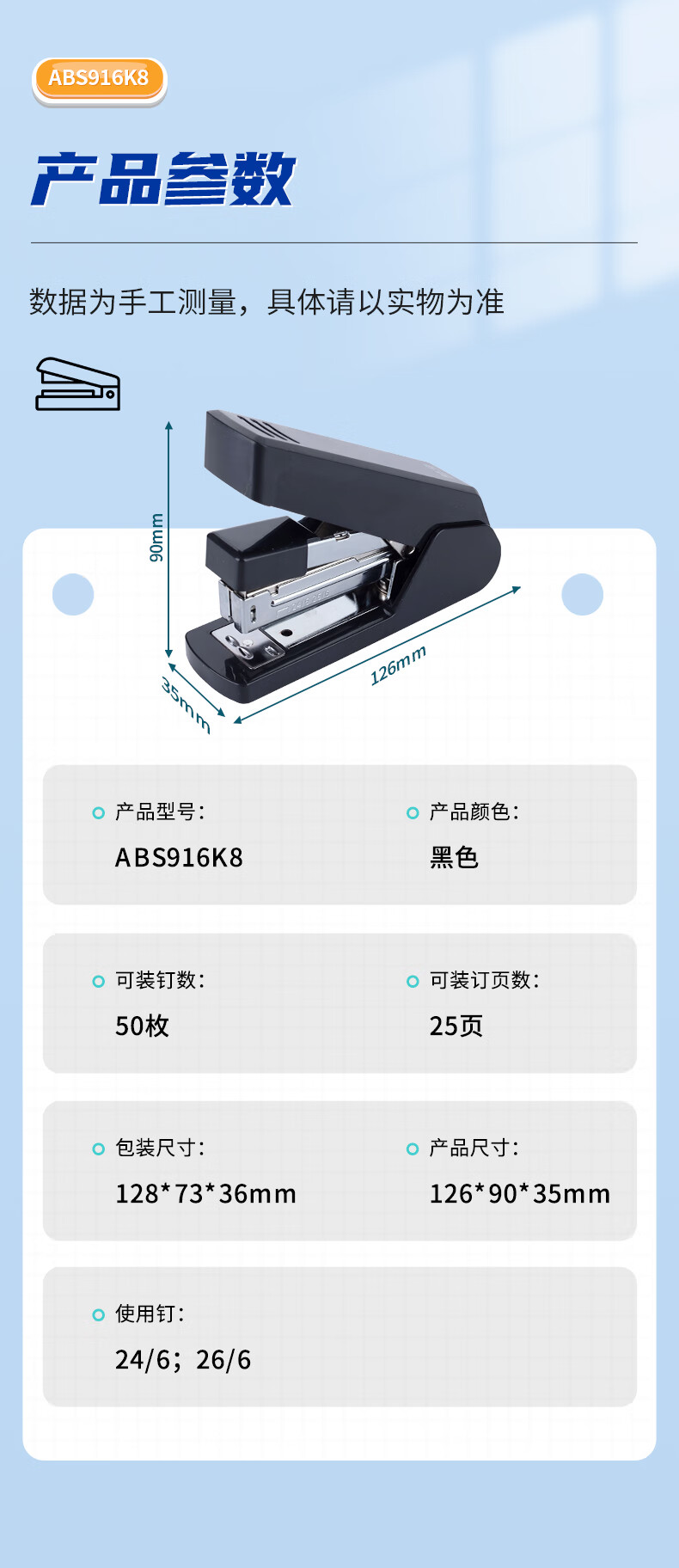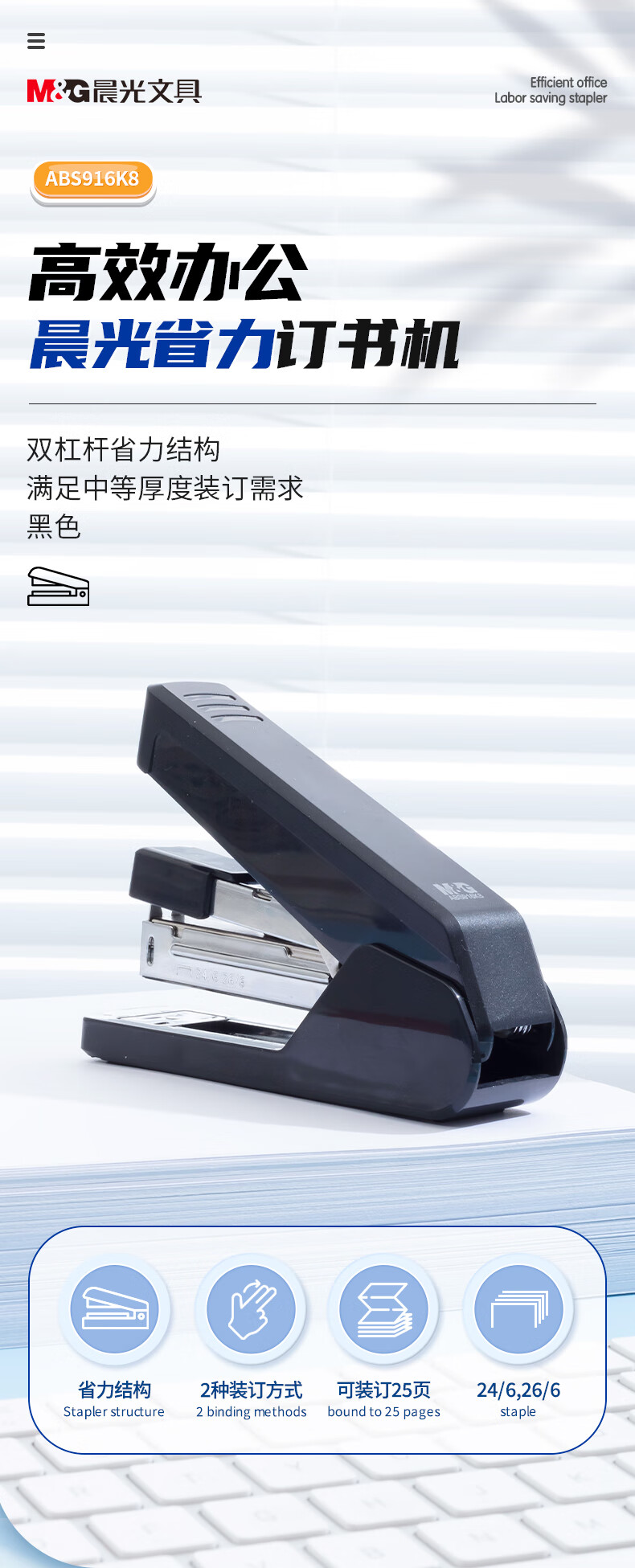 商品名稱:晨光ABS916K8 訂書機(jī) 12#耐用省力訂書器 辦公用品 黑色 單個裝