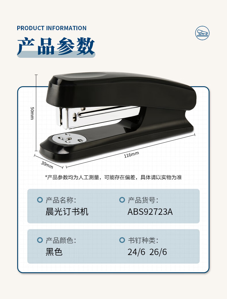 商品名稱:晨光ABS92723 12#訂書機(jī) 耐用便攜訂書器 辦公用品 單個(gè)裝