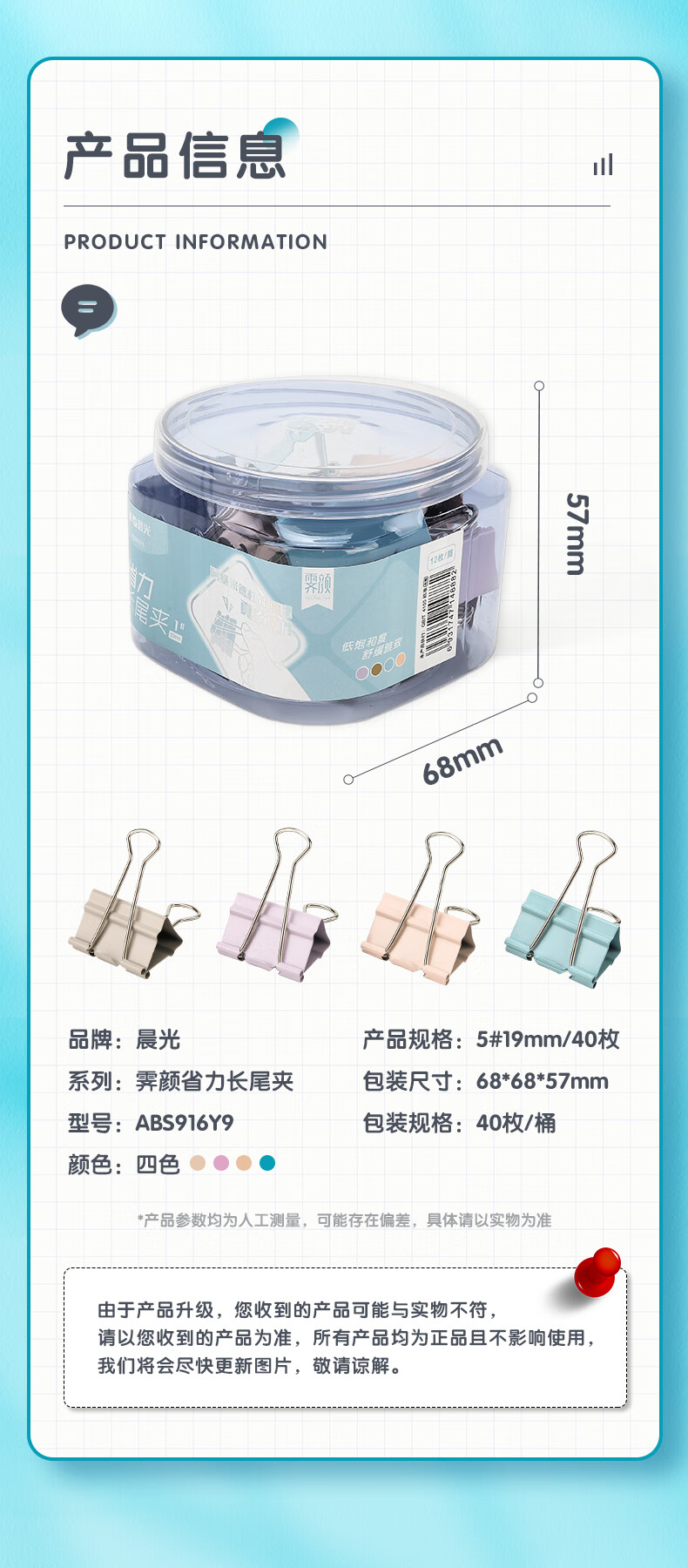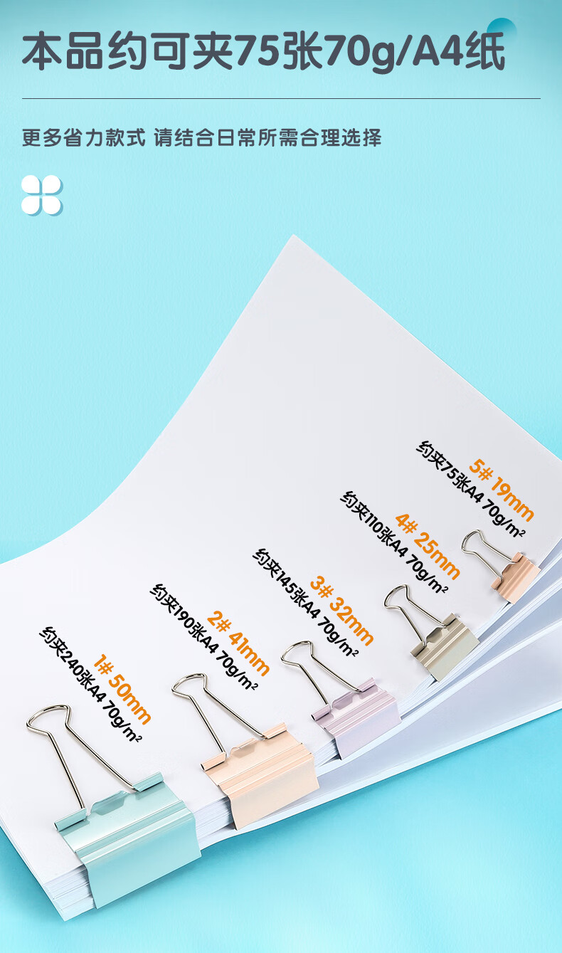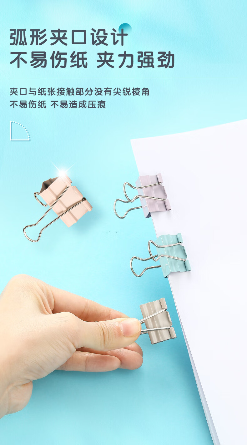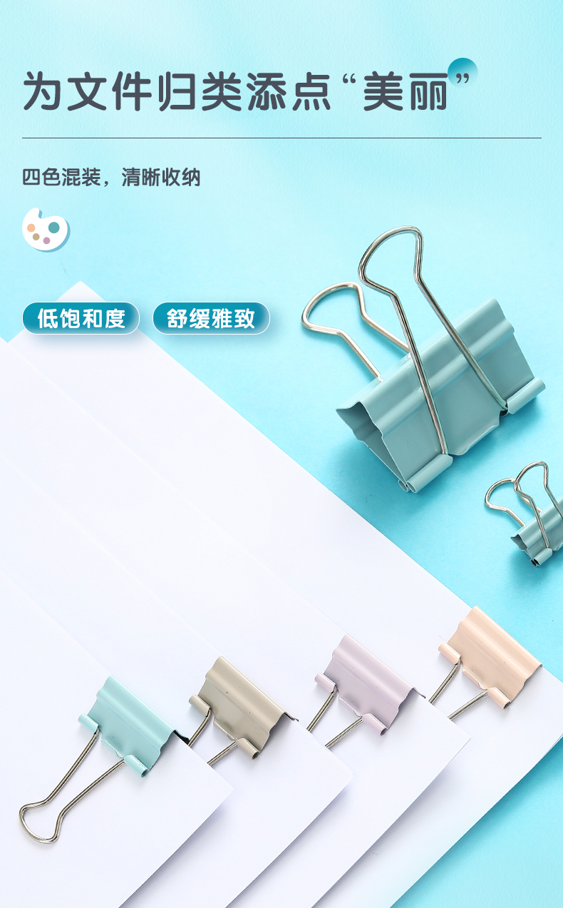 商品名稱:晨光ABS916Y9 省力長尾夾 5#19mm彩色金屬燕尾夾 莫蘭迪系列票據(jù)夾子 40只/筒
