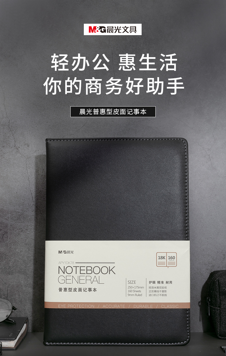 商品名稱:晨光APY1DK78 皮面本 B5/18K會議記錄筆記本 160張黑色普惠型記事本 單本裝