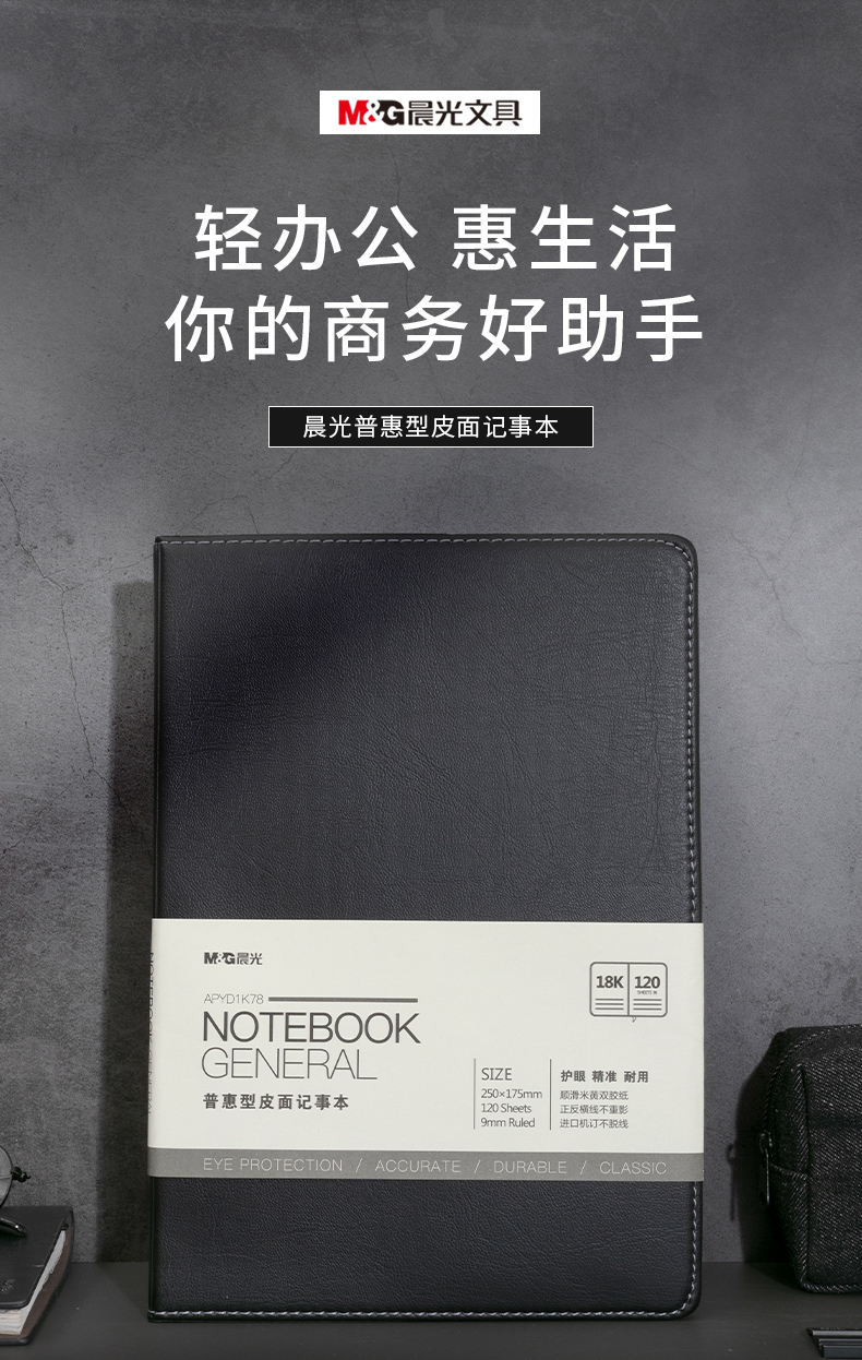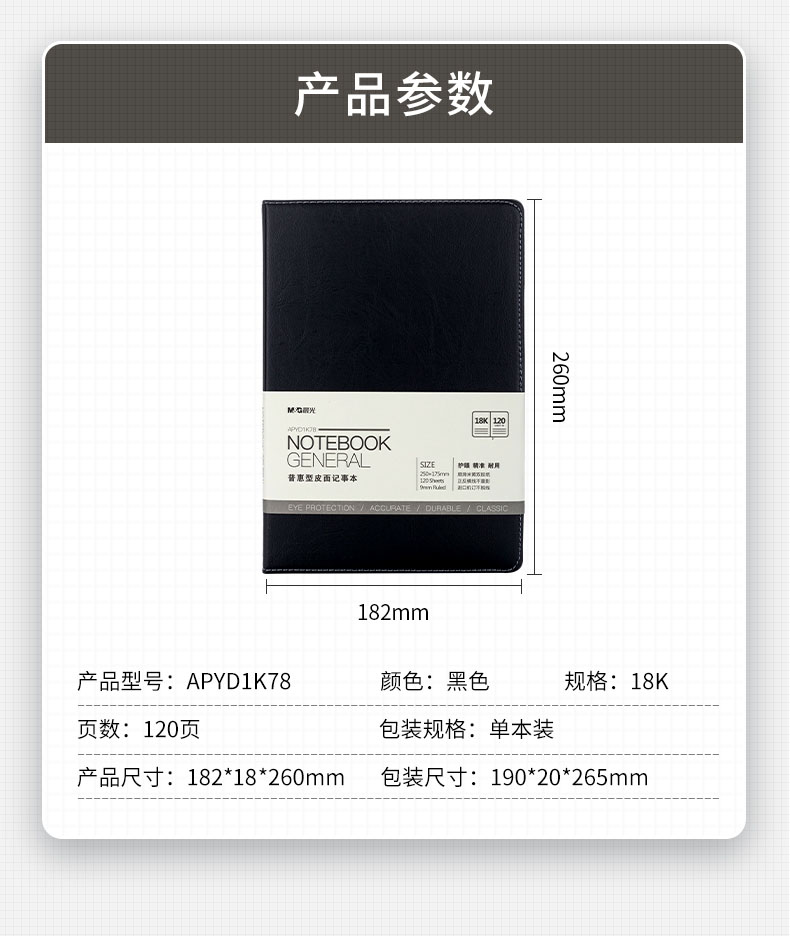 商品名稱(chēng):晨光APYD1K78 筆記本 B5/18K會(huì)議記錄皮面本 120張黑色商務(wù)記事本 單本裝