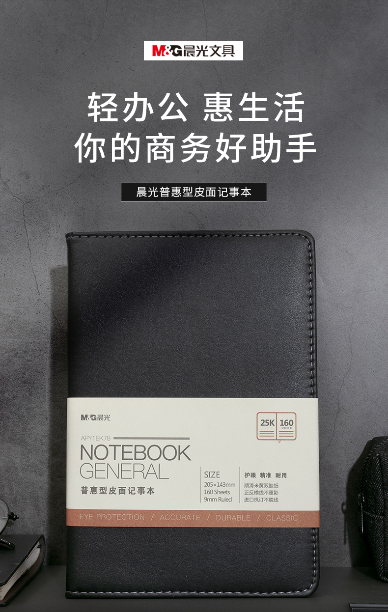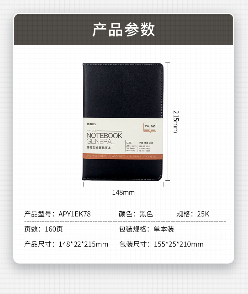 商品名稱:晨光APY1EK78 皮面本 A5/25K會議記錄筆記本 160張黑色普惠型記事本 單本裝