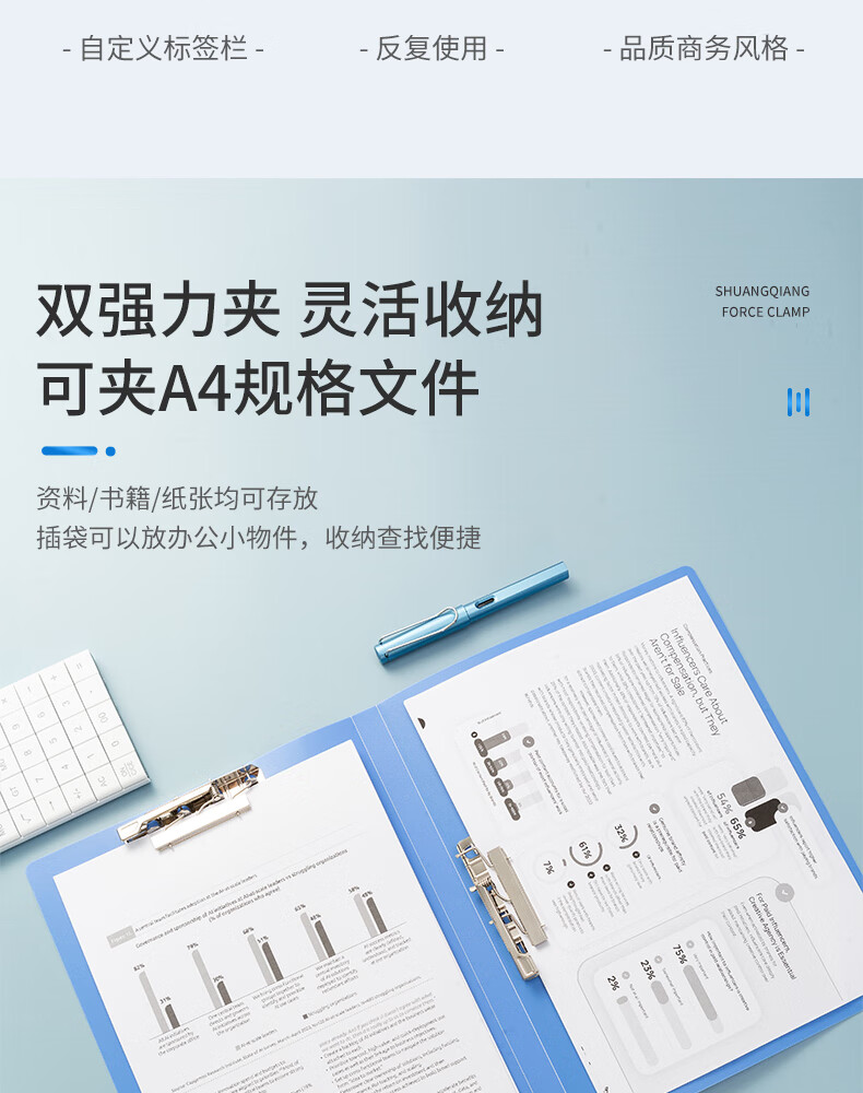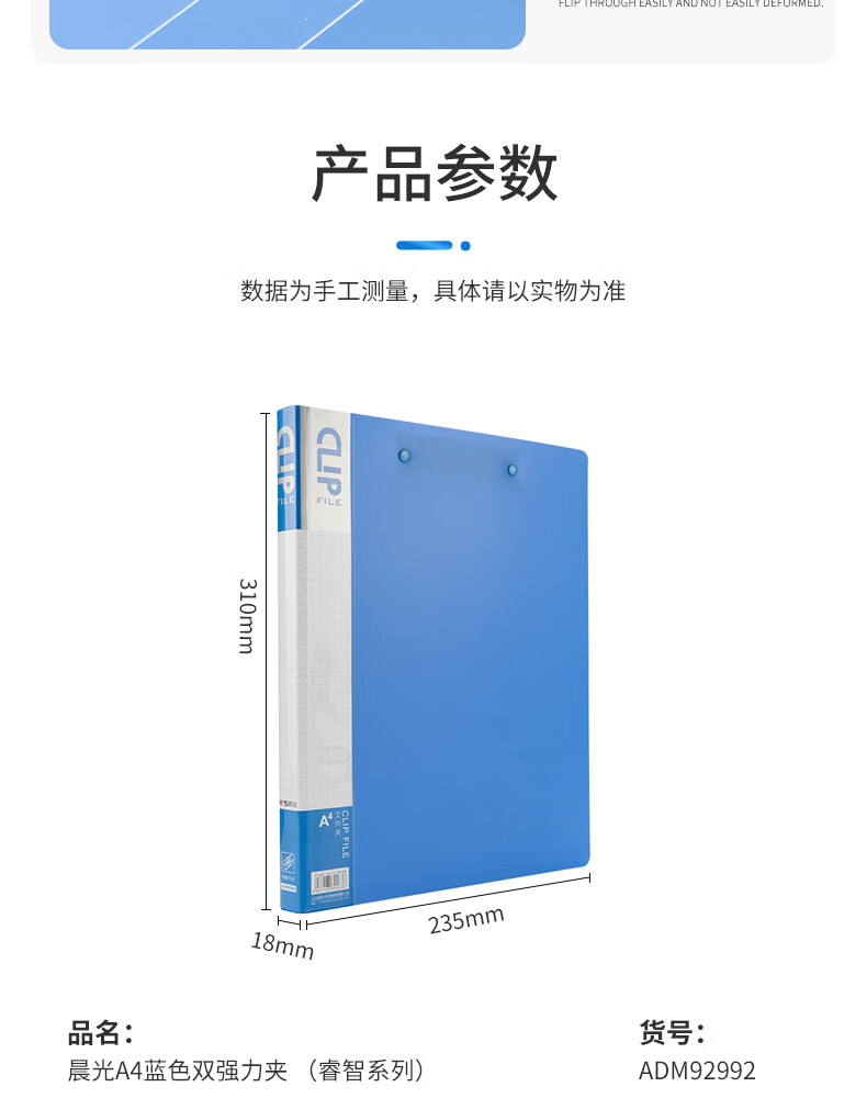商品名稱:晨光ADM92992 文件夾 A4藍(lán)色雙強(qiáng)力夾 睿智系列辦公資料夾 單個(gè)裝