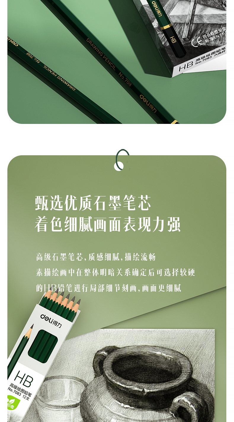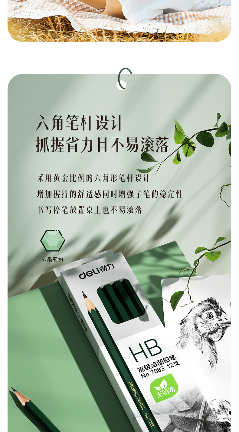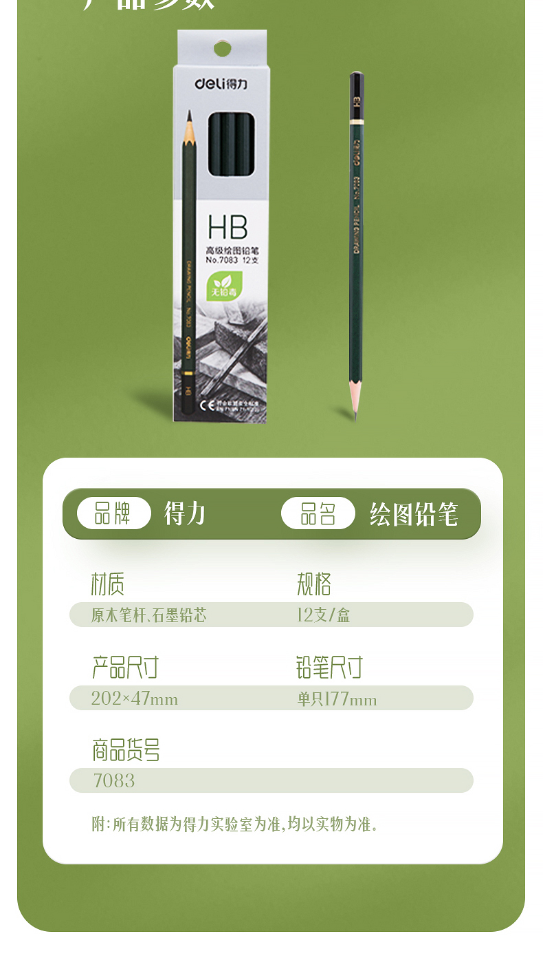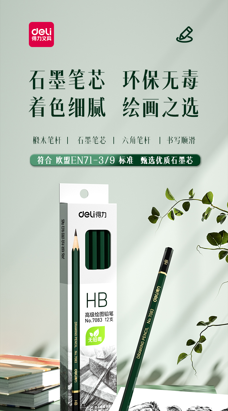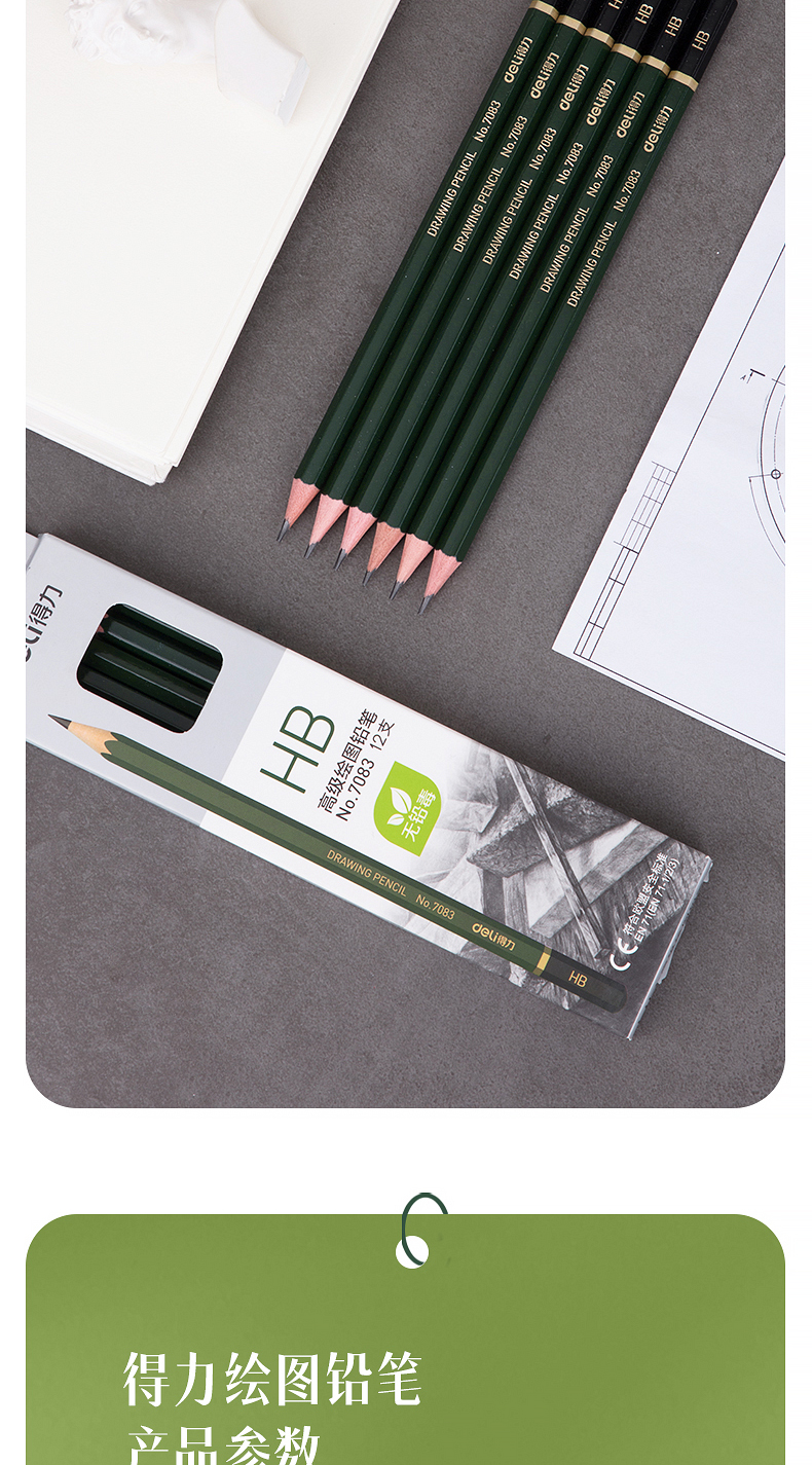 商品名稱(chēng):得力7083 HB鉛筆 安全石墨六角書(shū)寫(xiě)鉛筆 12支/盒