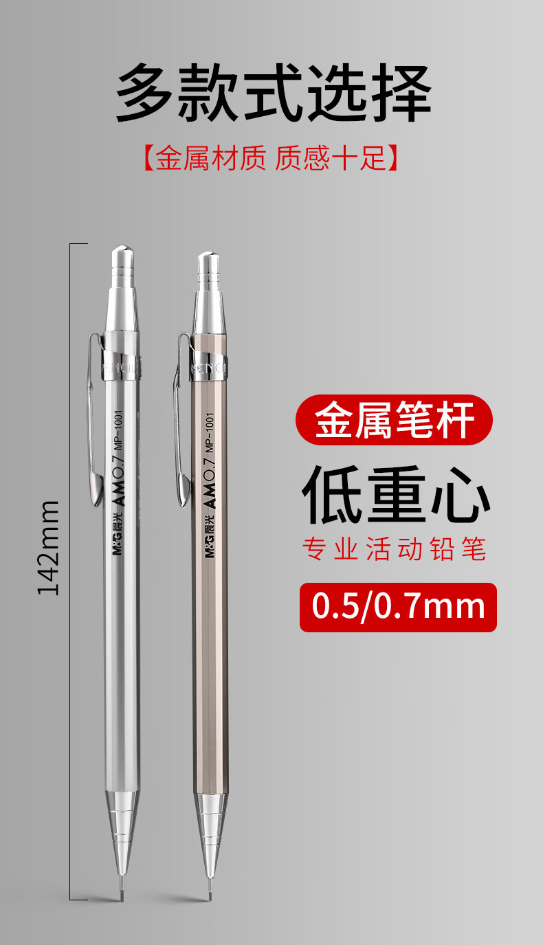 商品名稱:晨光MP1001 鐵桿自動鉛筆 簡約經(jīng)典金屬自動鉛筆不易斷芯黑0.5 單支裝