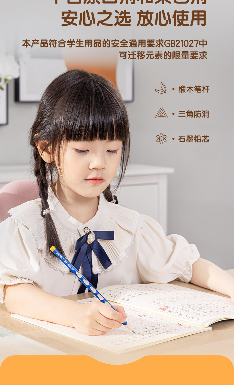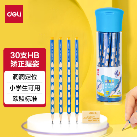 商品名稱:得力58184 洞洞筆鉛筆 HB鉛筆三角桿易抓握練字筆 30支/筒