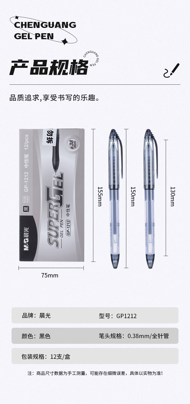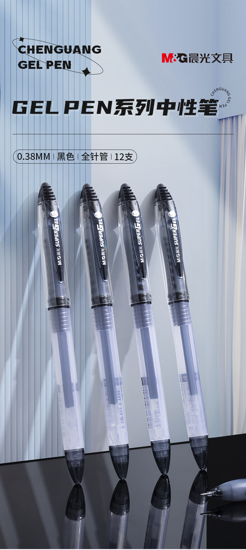 商品名稱:晨光GP1212 黑色中性筆 0.38mm拔蓋全針管簽字筆 GELPEN系列水筆 12支/盒
