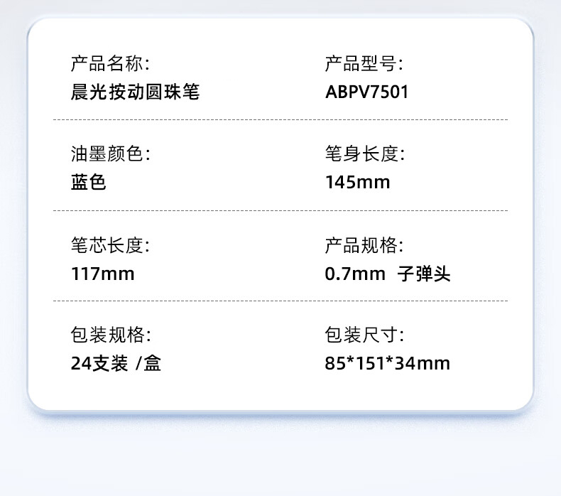 商品名稱:晨光ABPV7501 按動(dòng)圓珠筆 0.7mm經(jīng)典子彈頭原子筆 普惠型中油筆 24支/盒