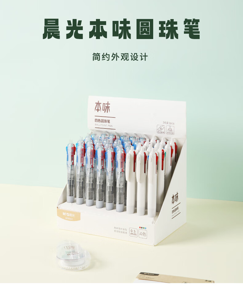商品名稱:晨光ABP80307 按動(dòng)圓珠筆 本味系列四色0.5mm子彈頭原子筆 四合一順滑油筆 3支裝