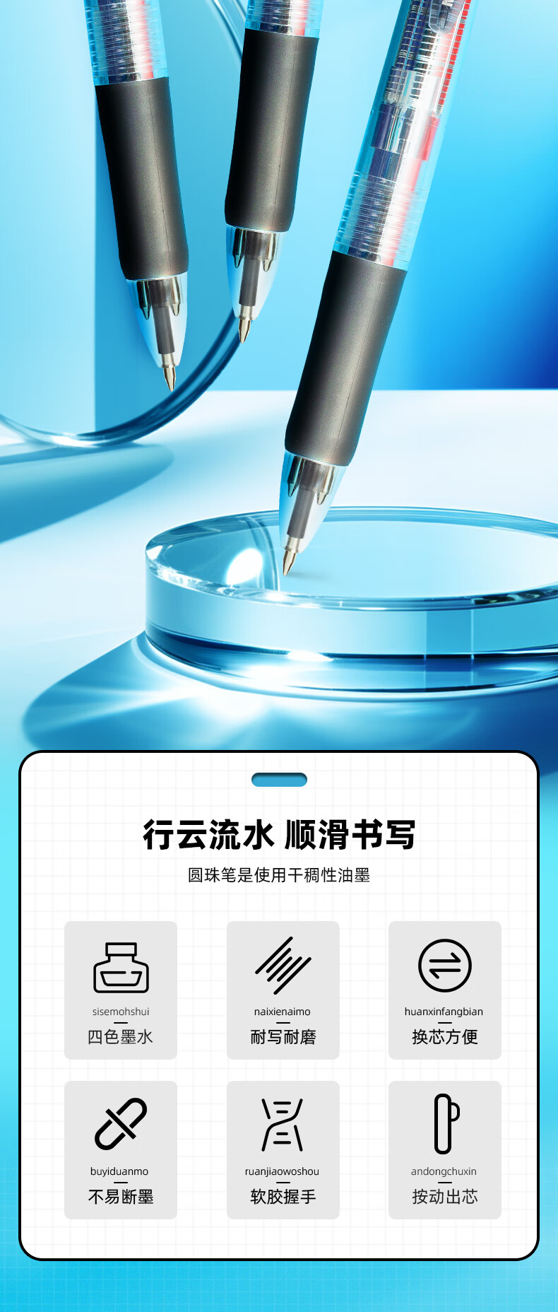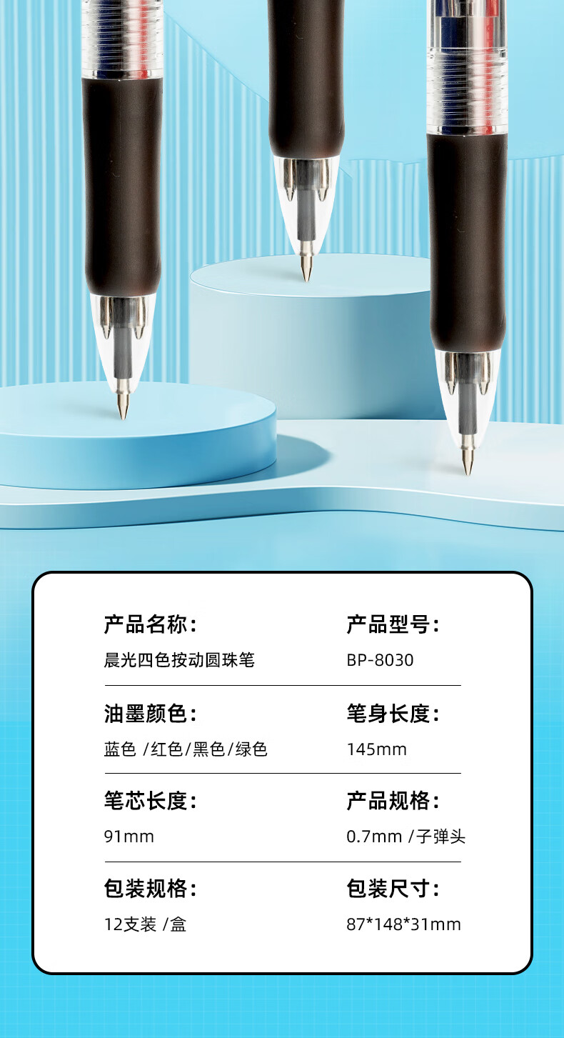 商品名稱:晨光BP8030 彩色按動(dòng)圓珠筆 0.7mm子彈頭4色原子筆 透明筆桿中油筆 12支/盒