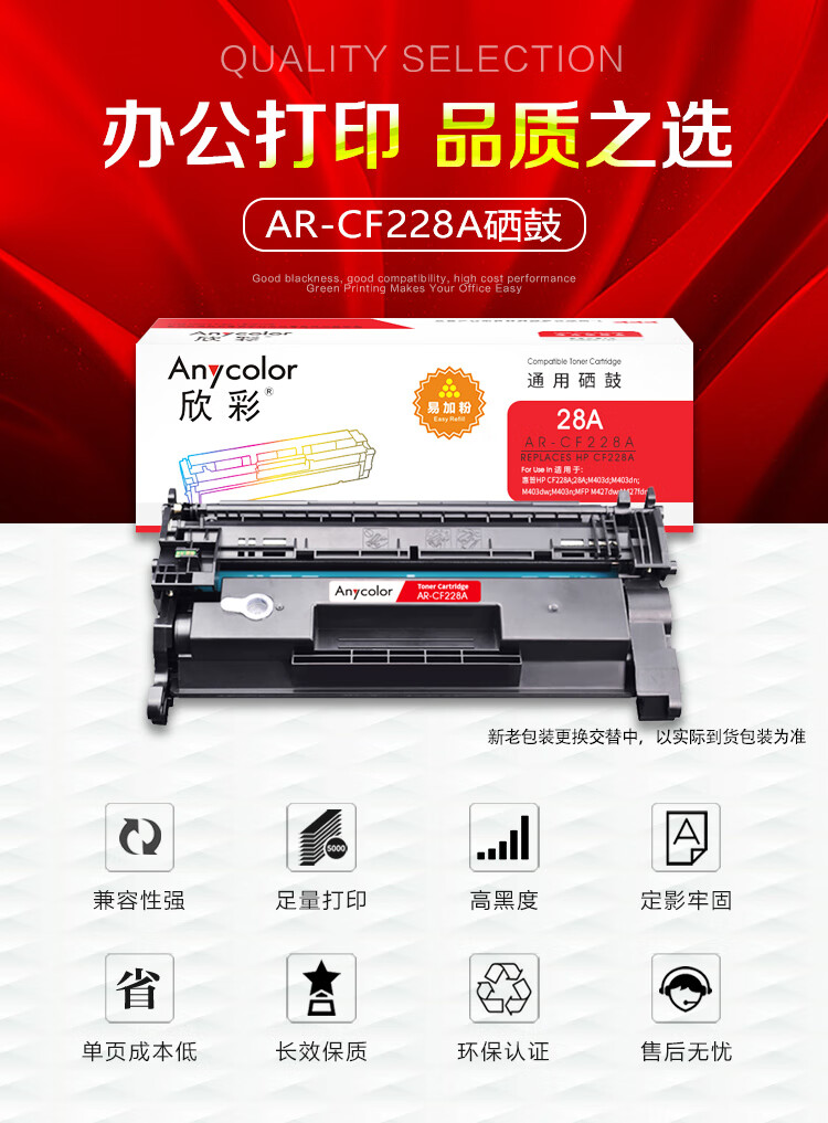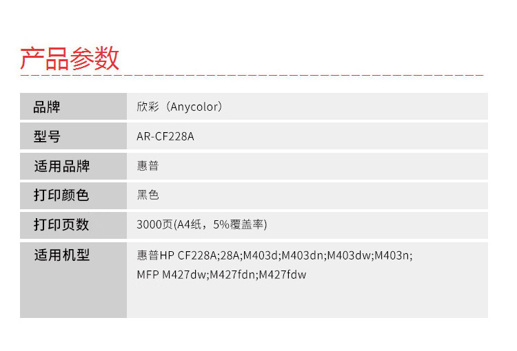 商品名稱(chēng):欣彩AR-CF228A硒鼓易加粉 適用惠普CF228A 28A M403d M403dn M403dw M403n MFP M427dw 單位:支