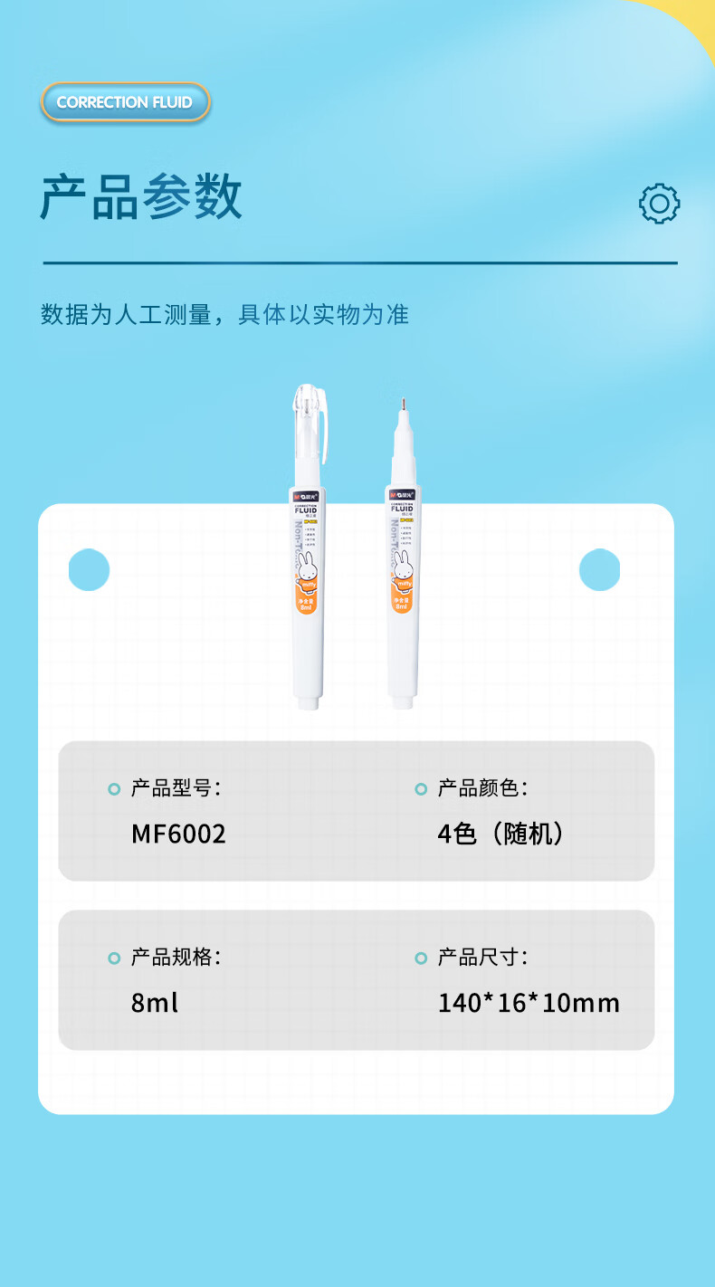 商品名稱:晨光MF6002 修正液 8ml涂改液改正液 米菲系列修正筆 顏色隨機 單支裝