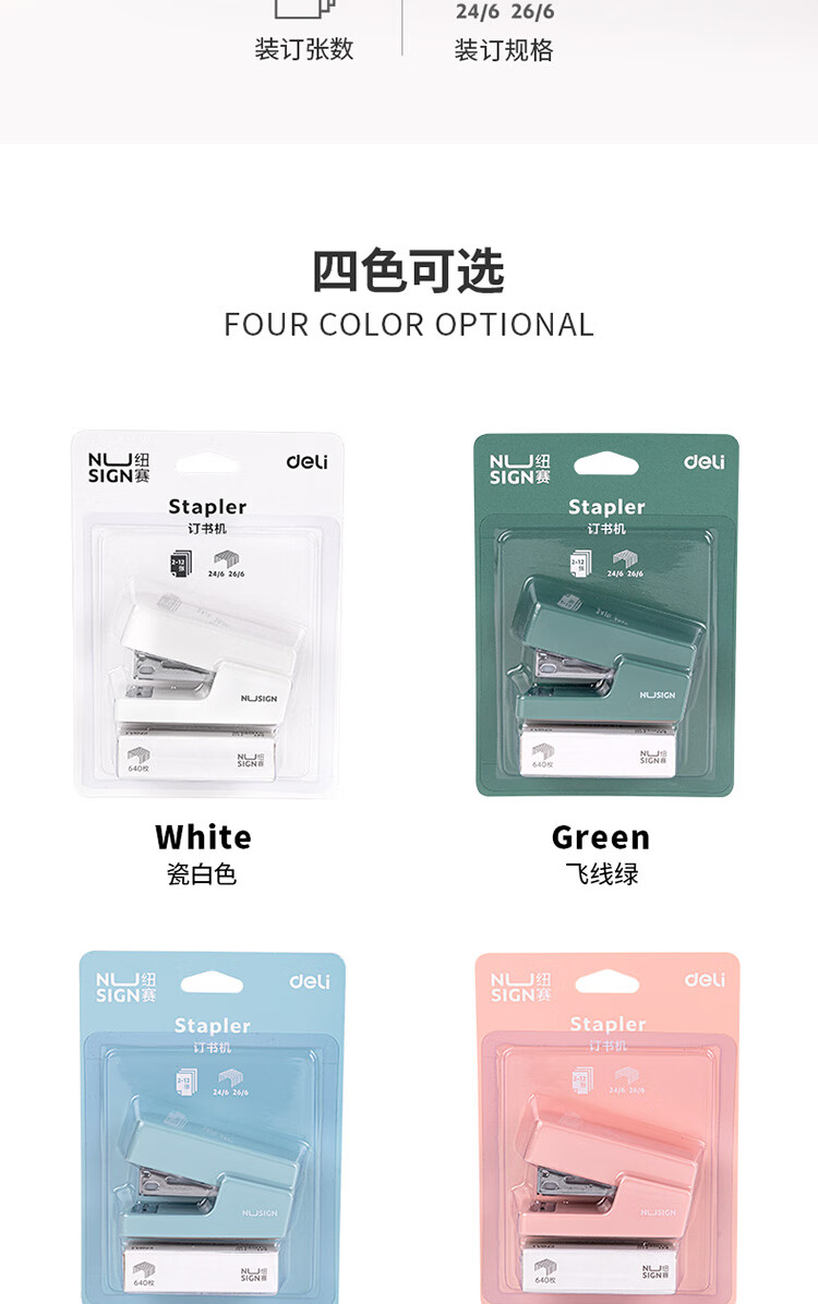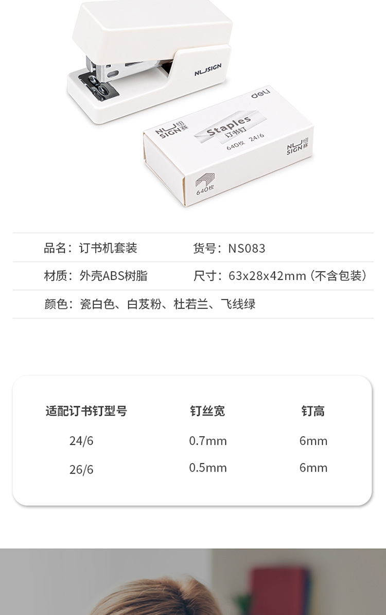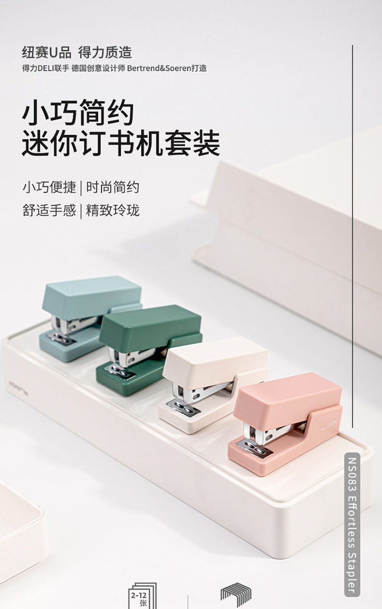 商品名稱:得力NS083 紐賽迷你小號(hào)訂書機(jī)(裝訂機(jī)+訂書釘) 顏色隨機(jī)(套)