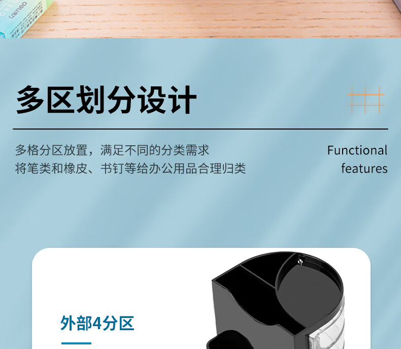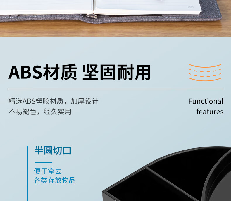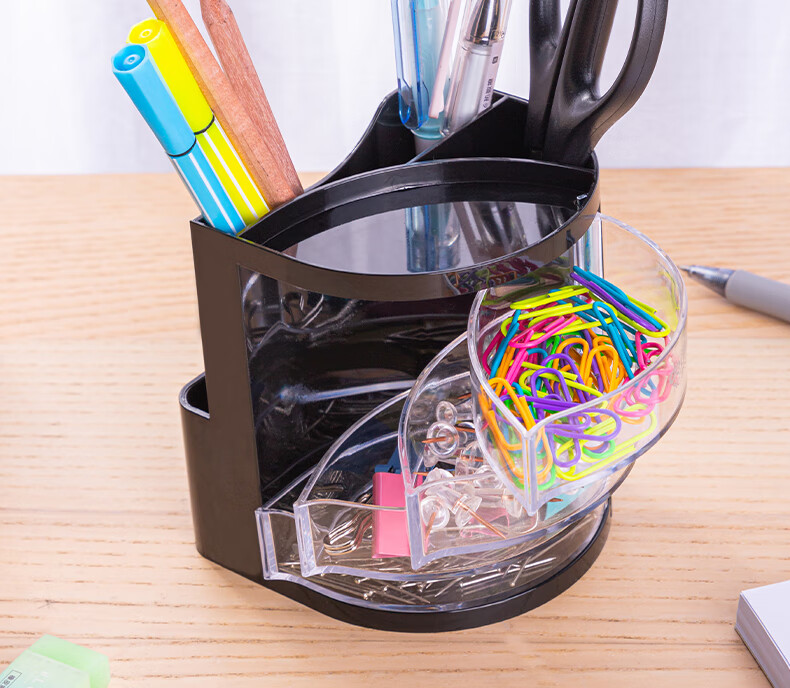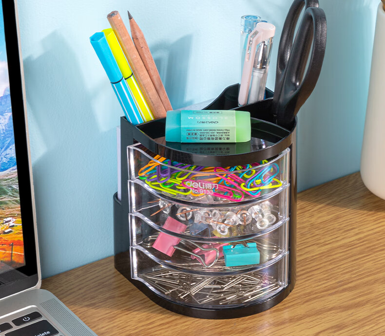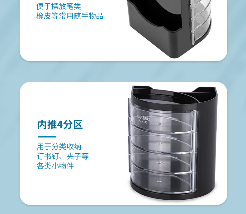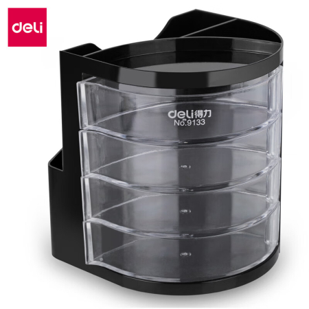 商品名稱:得力9133 四層多功能黑色筆筒 商務(wù)辦公桌面文具收納盒 單個裝