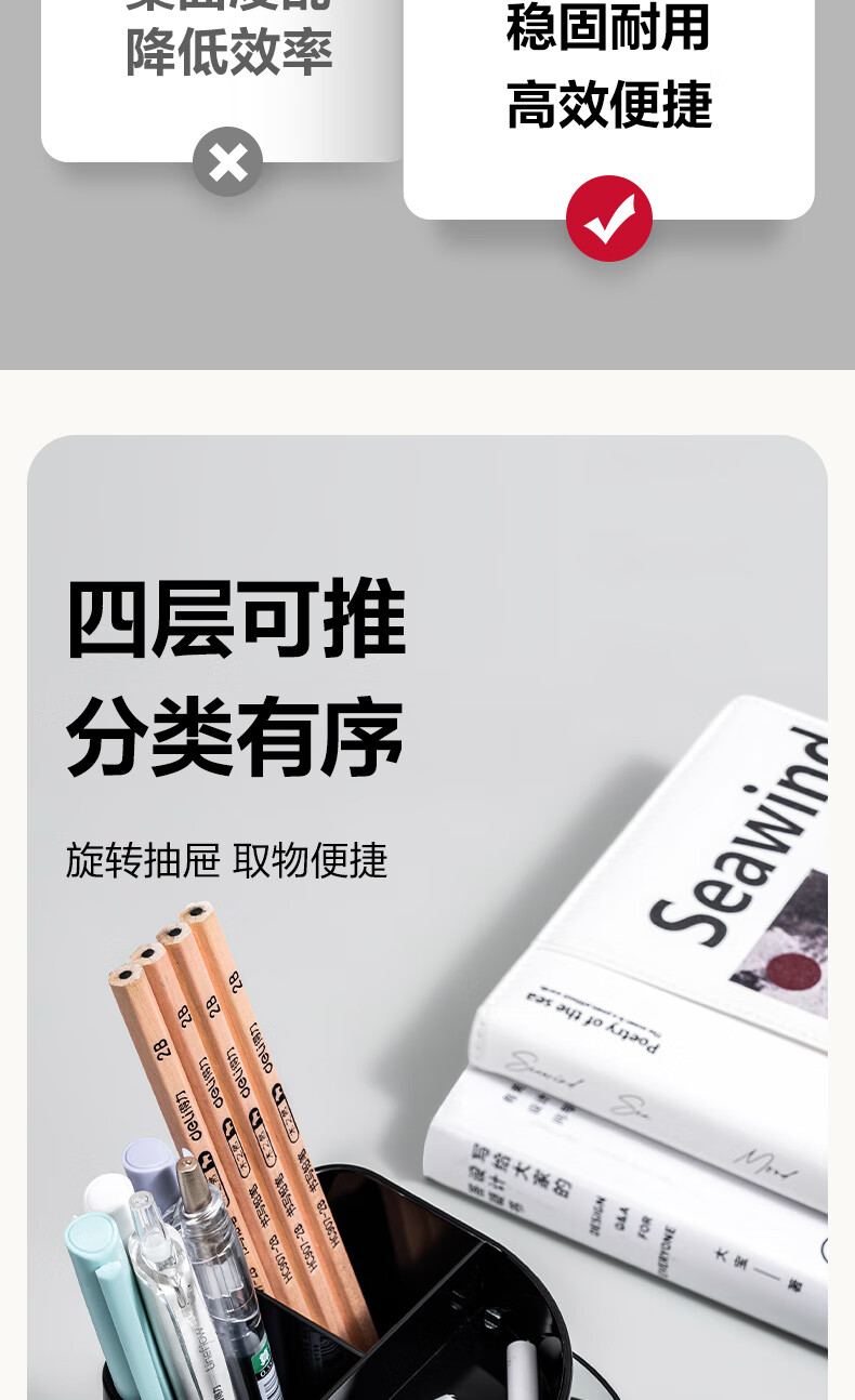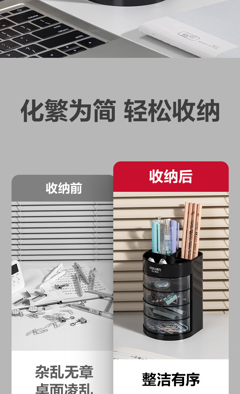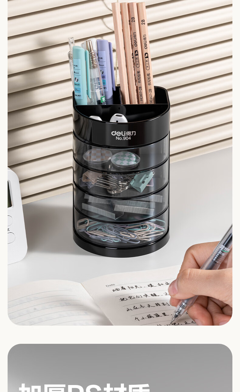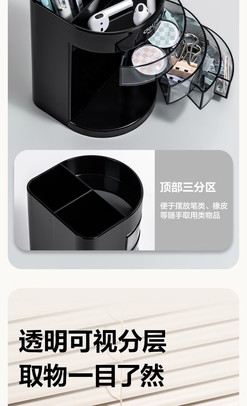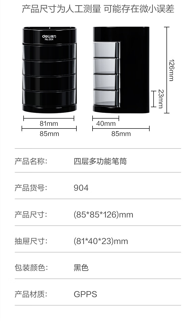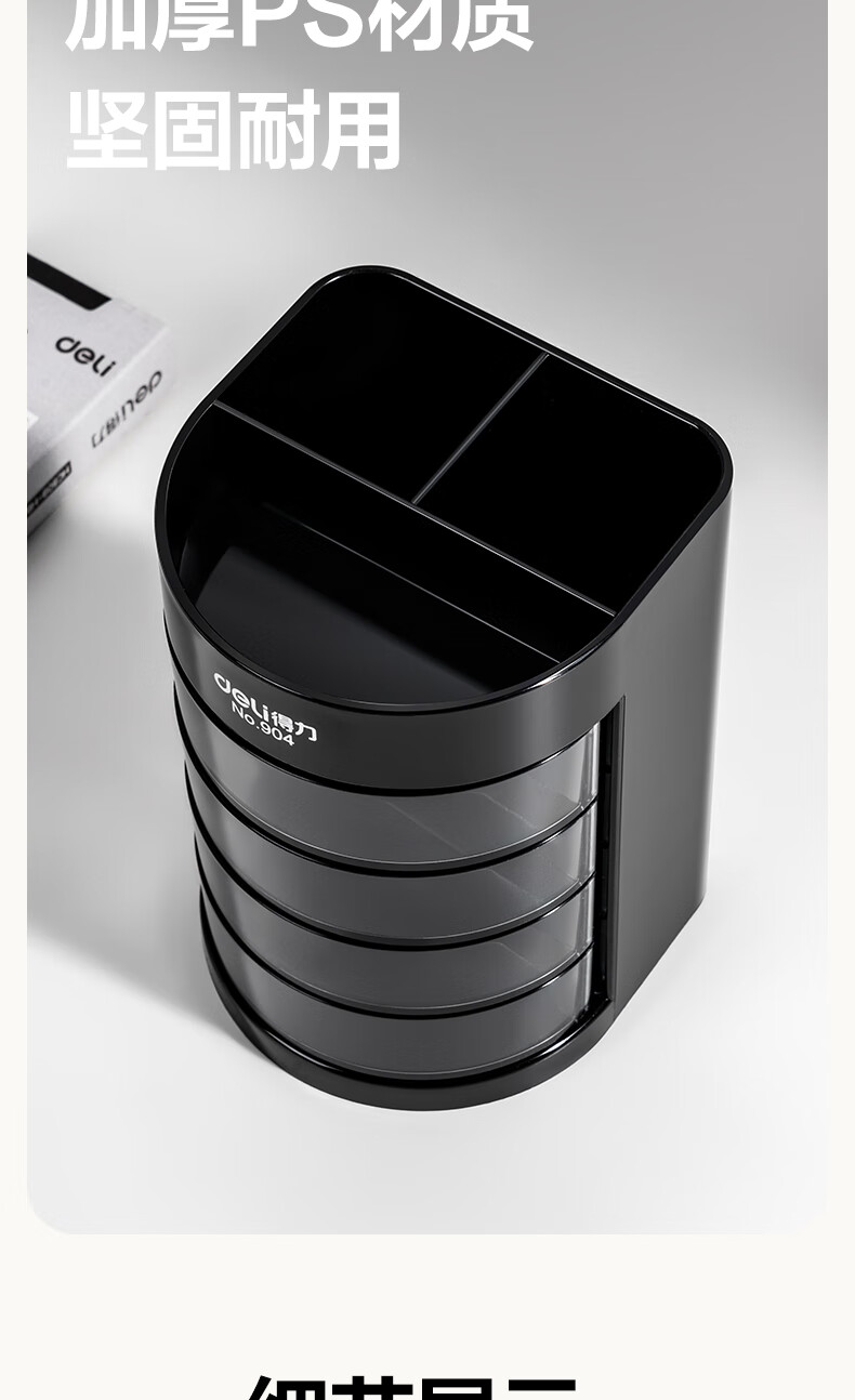 商品名稱:得力904 四層多功能筆筒 創(chuàng)意桌面收納盒 辦公用品 黑色 單個(gè)裝