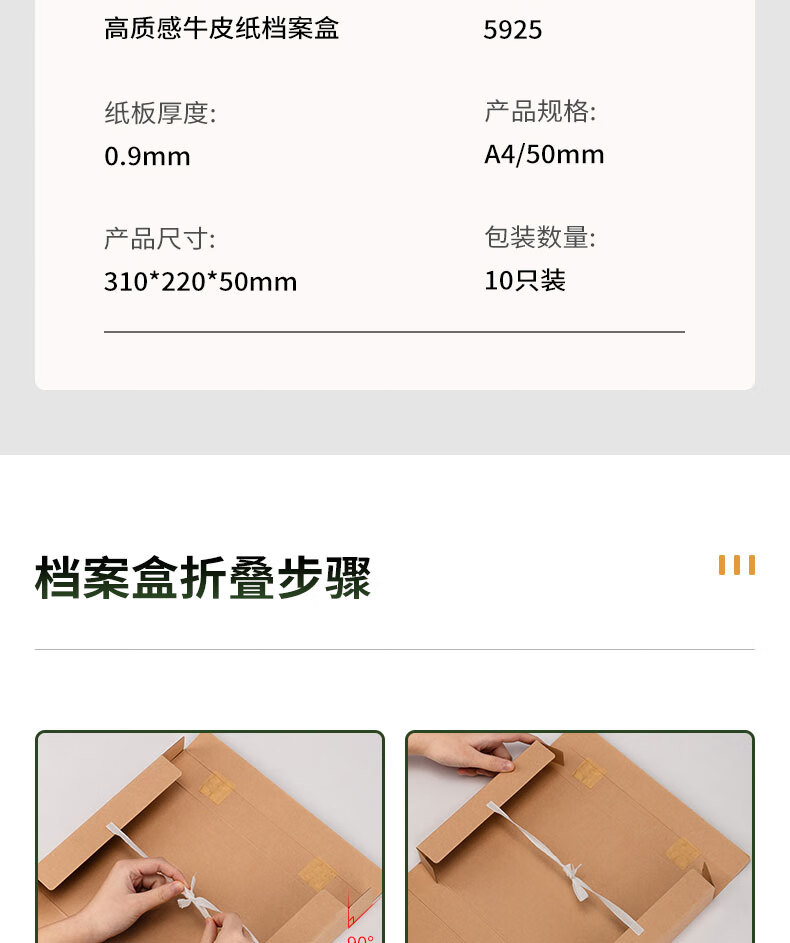 商品名稱:得力5925 牛皮紙檔案盒 50mm純漿250g加厚文件盒 財務(wù)用品 10只/包
