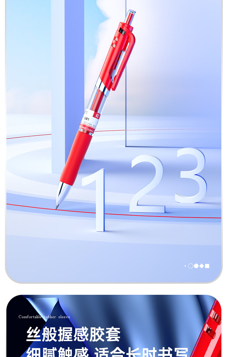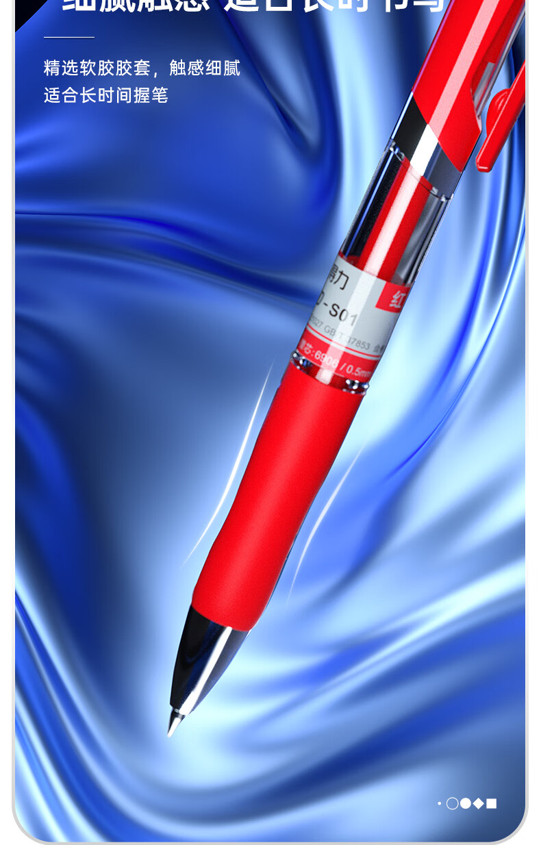 商品名稱:得力S01 紅色中性筆 0.5mm子彈頭經典按動簽字筆水筆 單支裝