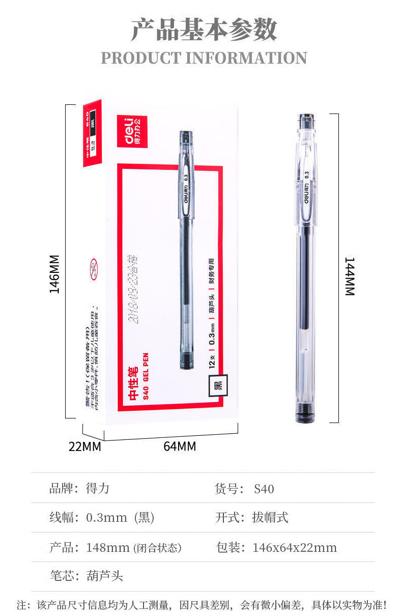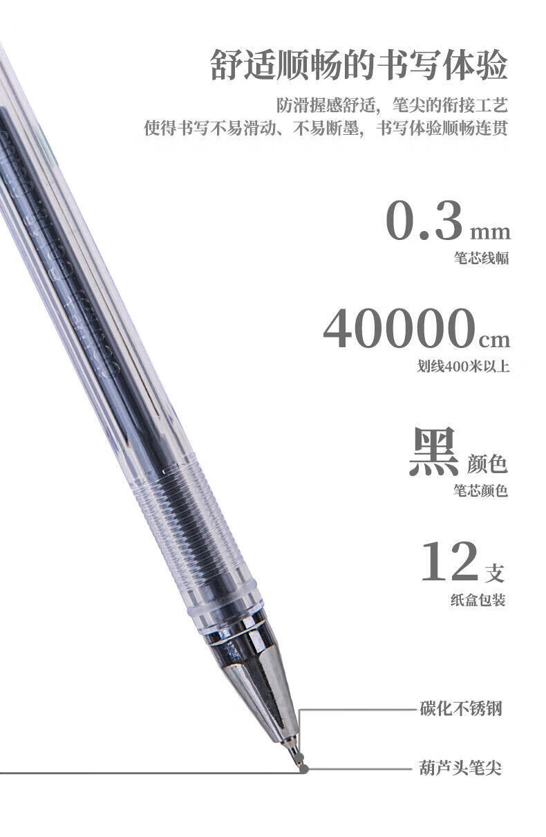 商品名稱:得力S40 黑色中性筆 0.3mm葫蘆頭簽字筆水筆碳素筆速干細(xì)筆 12支/盒